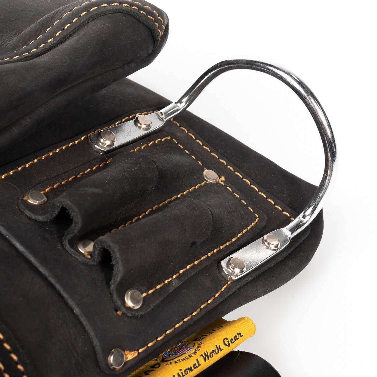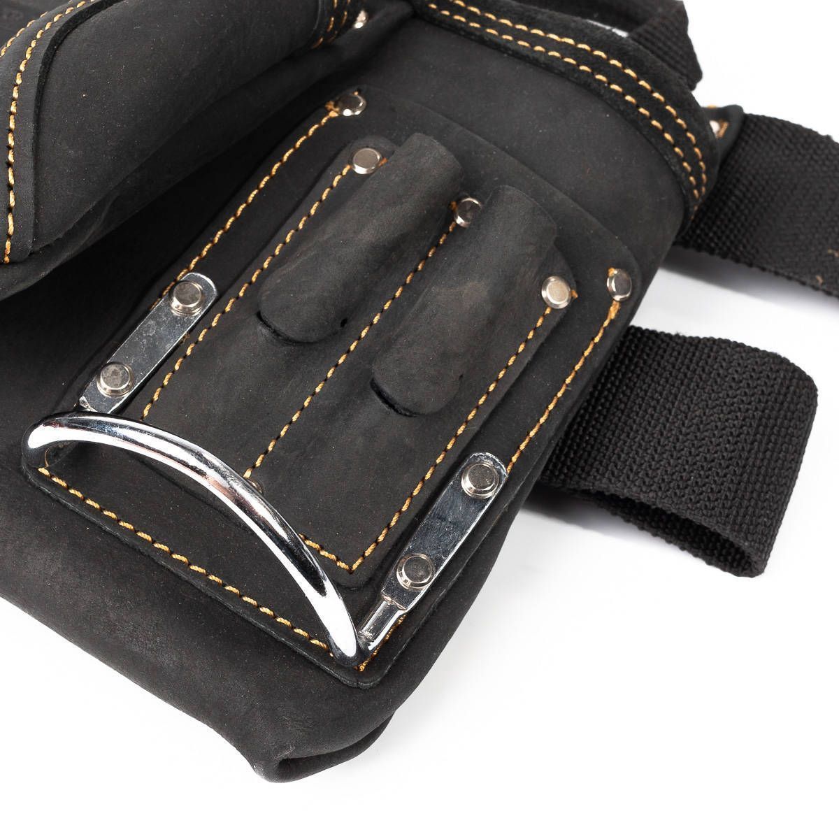 - 2 симметричных больших подсумника с 5 отделениями и 1 стальным держателем для молотка каждый и центральная сумка-карман