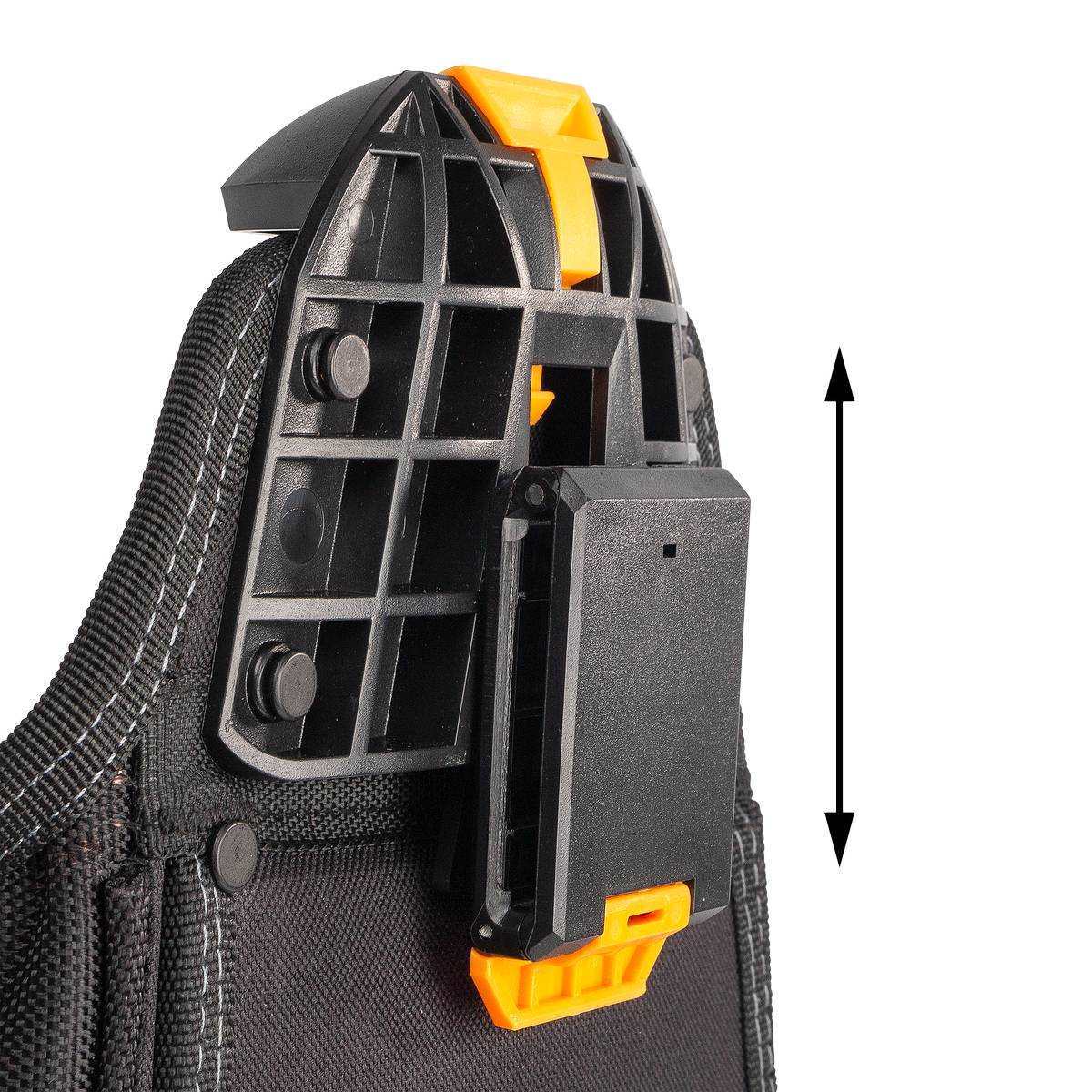 Разгрузка необходимого комплекта ручного инструмента при проведении монтажных работ- Быстросъемная система «Quick-Lock» позволяет с легкостью снять, заменить или закрепить сумку на поясном ремне