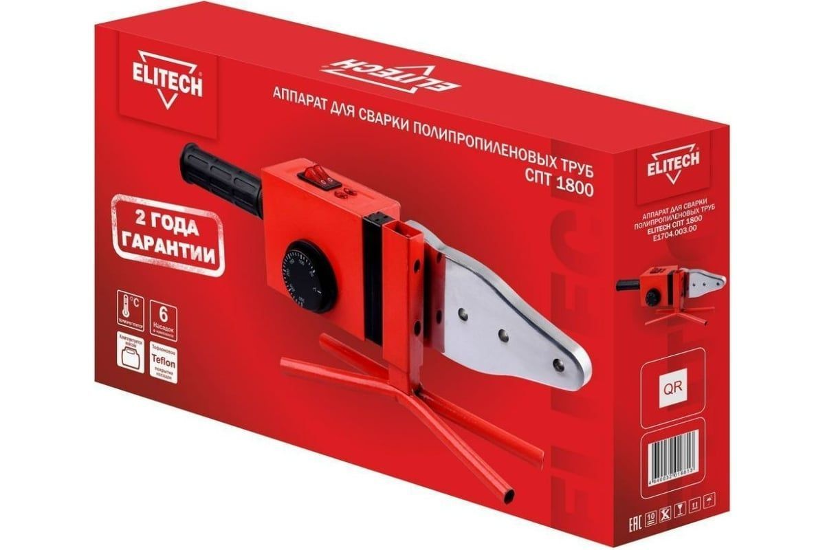 Сварочный аппарат для полипропиленовых труб СПТ 1800 (1800Вт / 300°С / 6 насадок / Кейс) ELITECH 204461