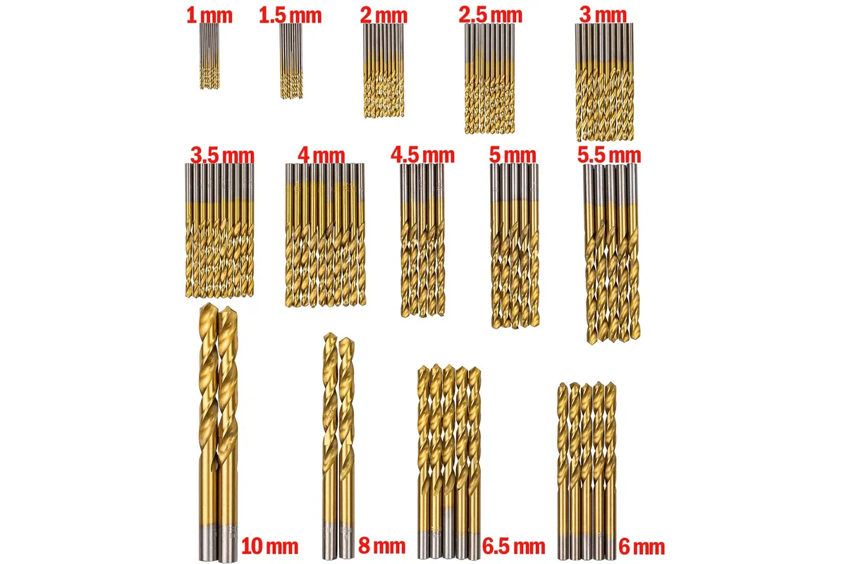 Набор сверл HSS от Forsage включает в себя 99 спиральных сверл, предназначенных для сверления отверстий в различных металлических изделиях.