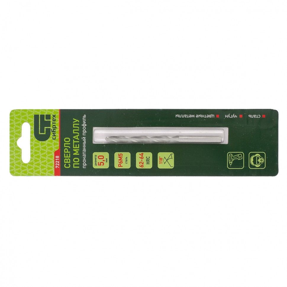 Сверло по металлу, 5.0 мм, Р6М5 Сибртех 72218