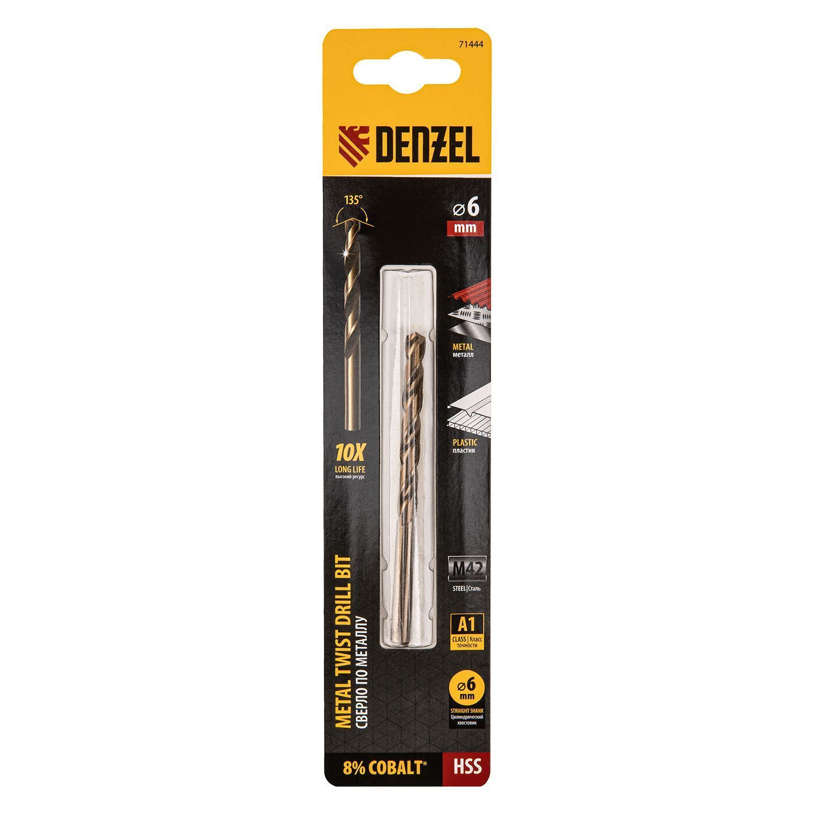 Сверло по металлу, 6х57х93мм, HSS Co-8% DENZEL 71444