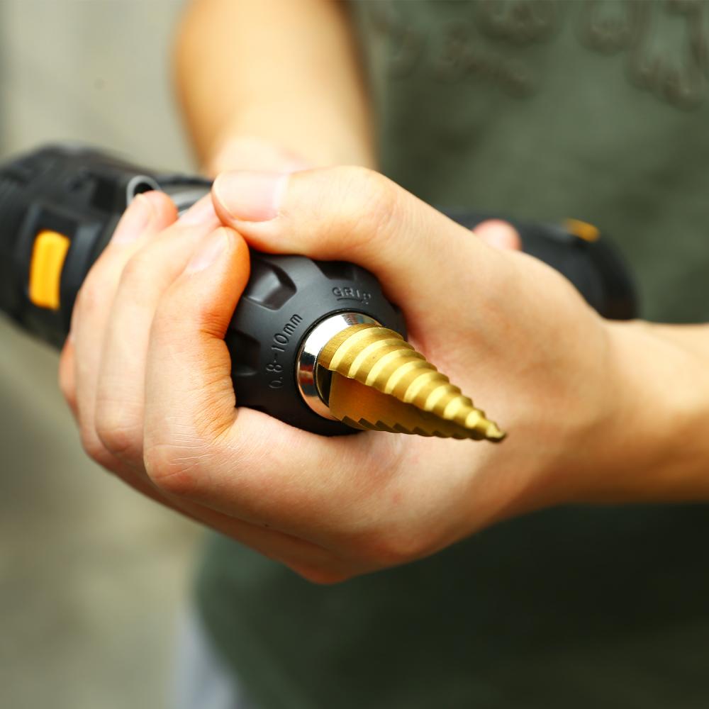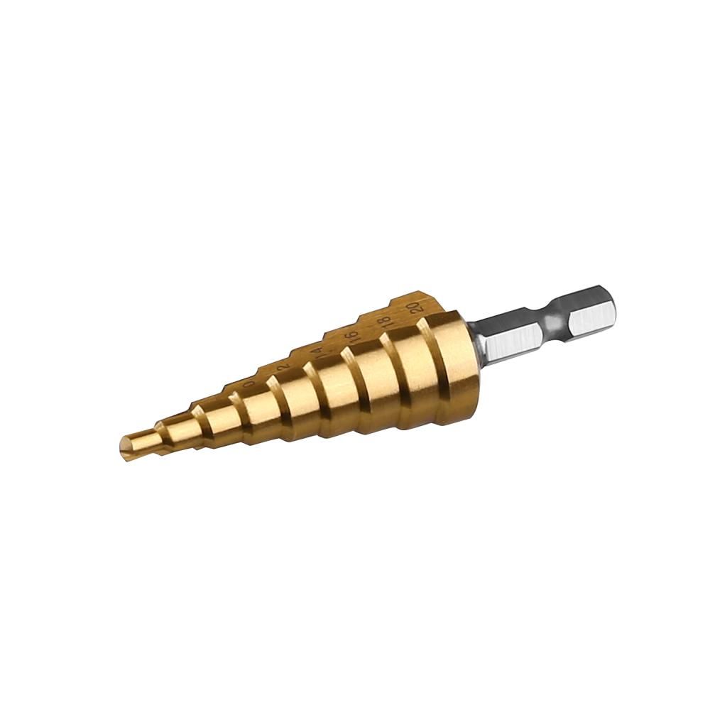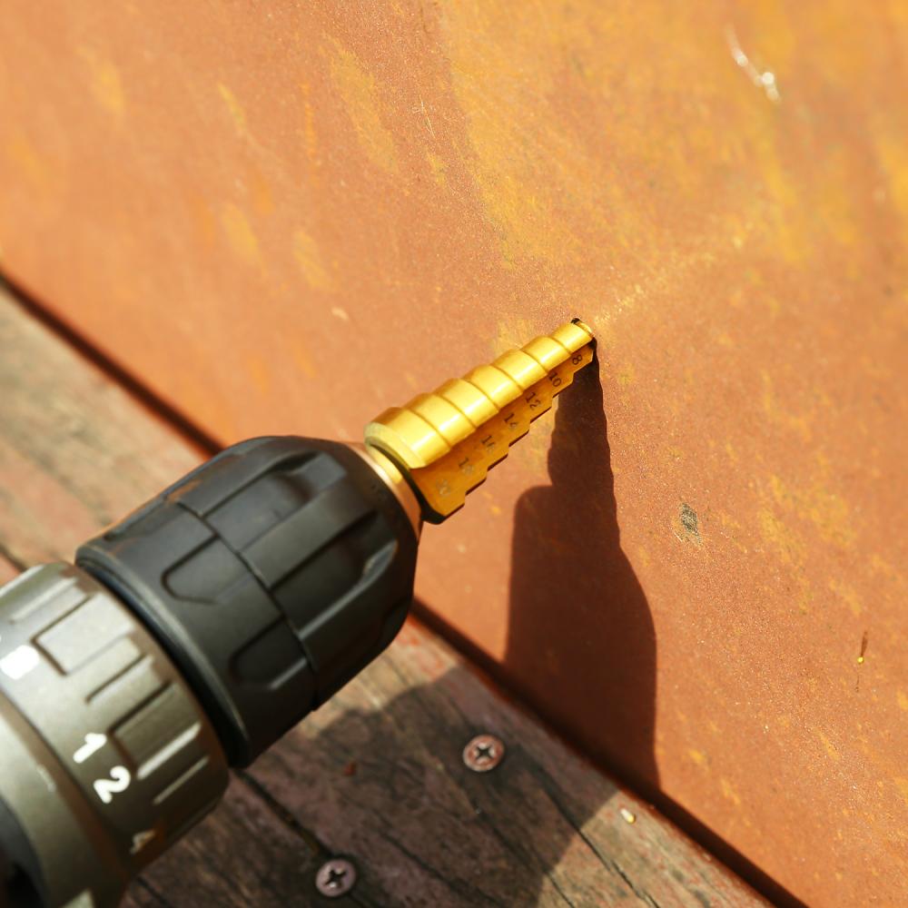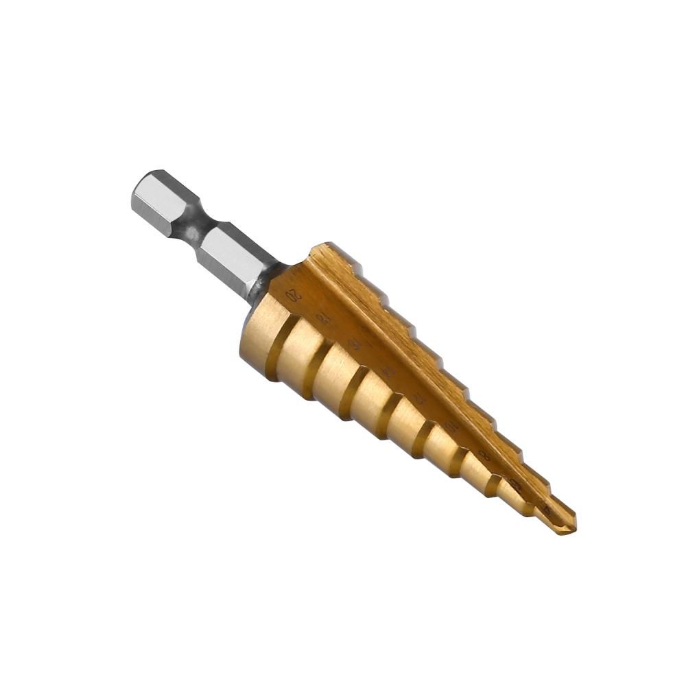- Cверло ступенчатое DEKO DH23 изготовлено из быстрорежущей стали (HSS) с покрытием из нитрида титана для увеличения срока службы.