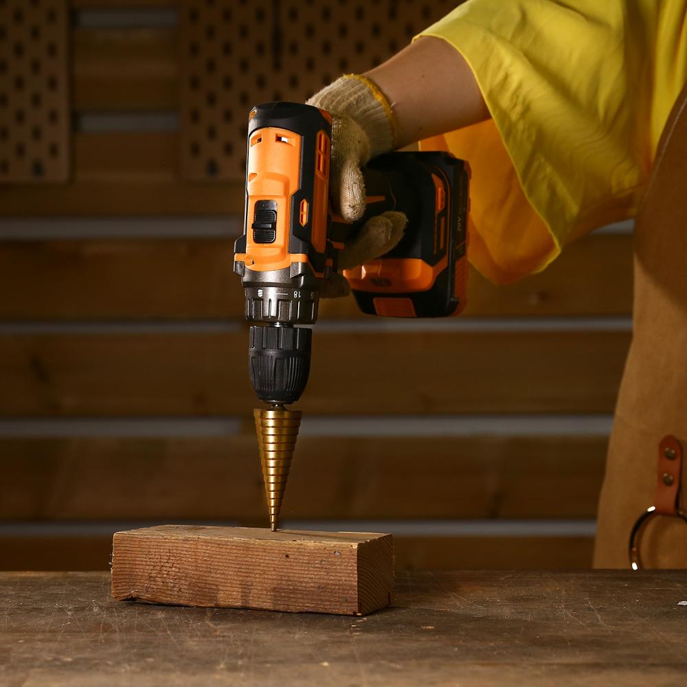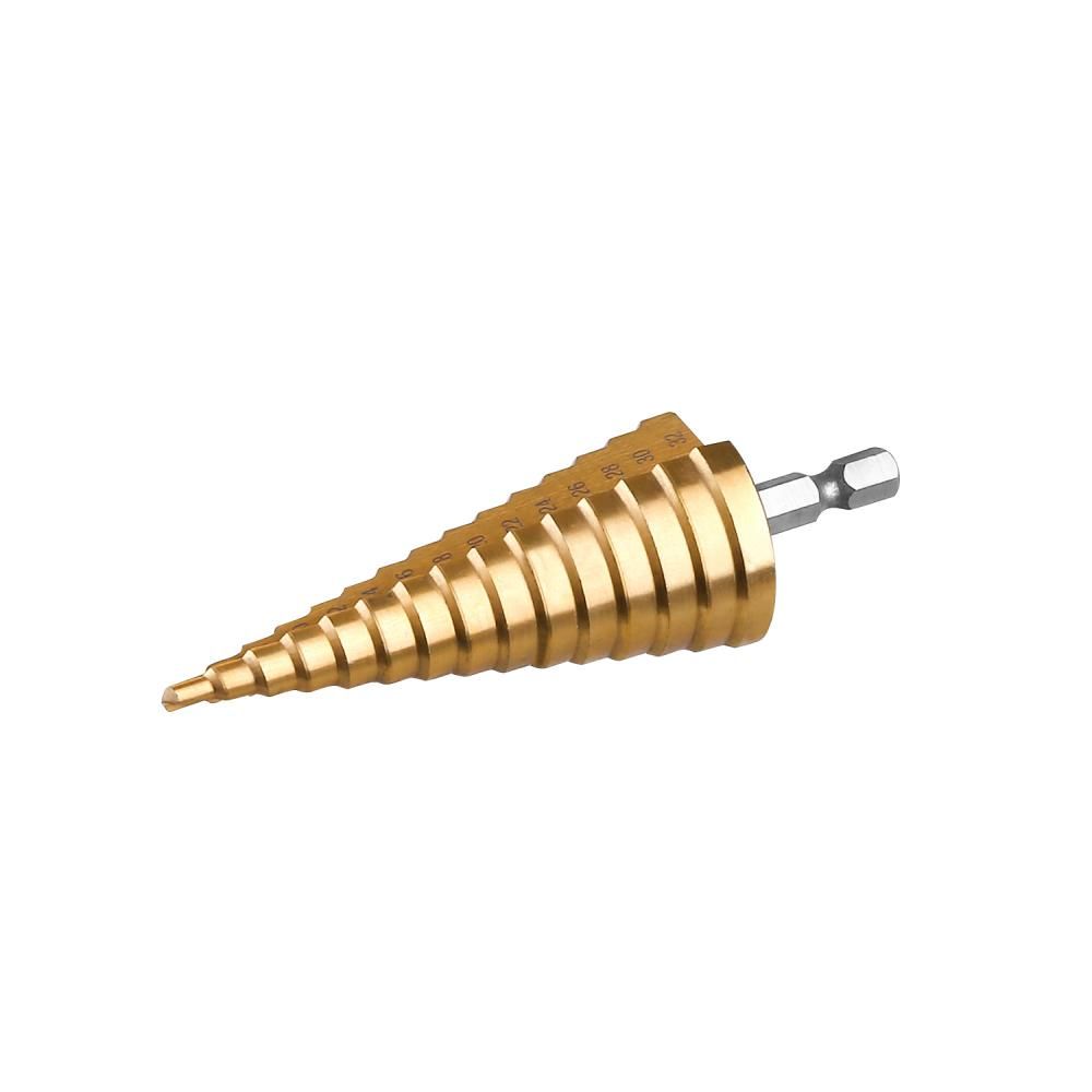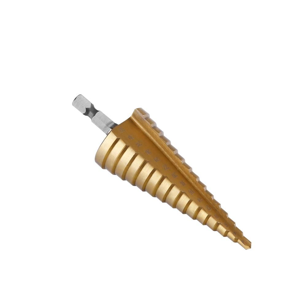 - Cверло ступенчатое DEKO DH24 изготовлено из быстрорежущей стали (HSS) с покрытием из нитрида титана для увеличения срока службы.