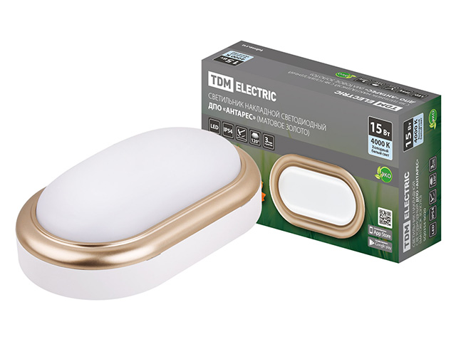 Светильник накладной LED ДПО "Антарес" 8Вт 4000К овал 168*100*58 мм мат.золото IP54 (пылеб...