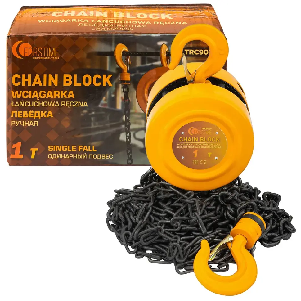 Таль ручная 1т FORSTIME FT‑TRC9010 — надёжное грузоподъёмное устройство, предназначенное для подъёма и удержания грузов весом до 1000 кг. Работает по принципу цепной тали: усилие передаётся через систему блоков и цепь, что позволяет оператору вручную поднимать тяжёлые предметы без применения электроэнергии.