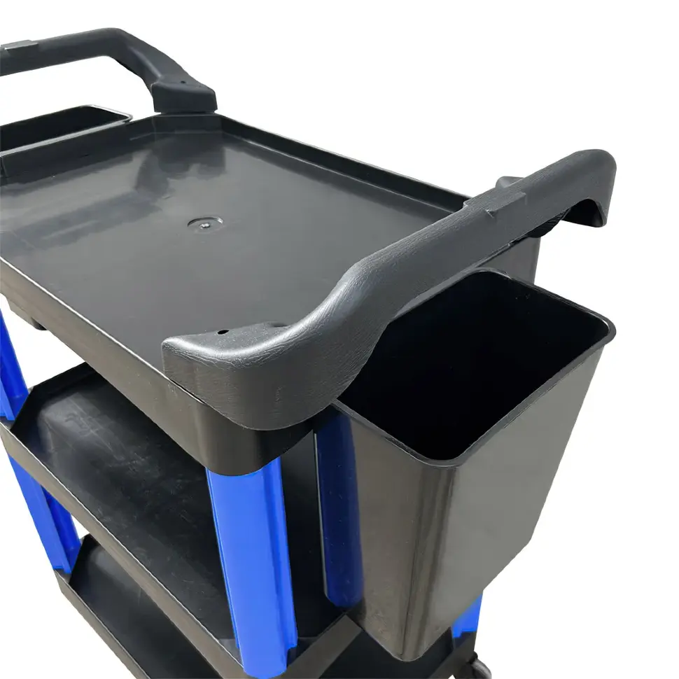 Передвижная система хранения или тележка на колесах с 3 ярусами полок легко перемещается ближе к месту работы или просто с места на место, удобно организовывая рабочее пространство. Компактность позволяет размещать эту систему хранения в помещениях жилого и нежилого типа, разной площади. Тележка инструментальная с ящиками для хранения и перевозки предметов имеет удобные ручки для управления при перемещении.