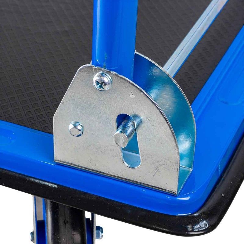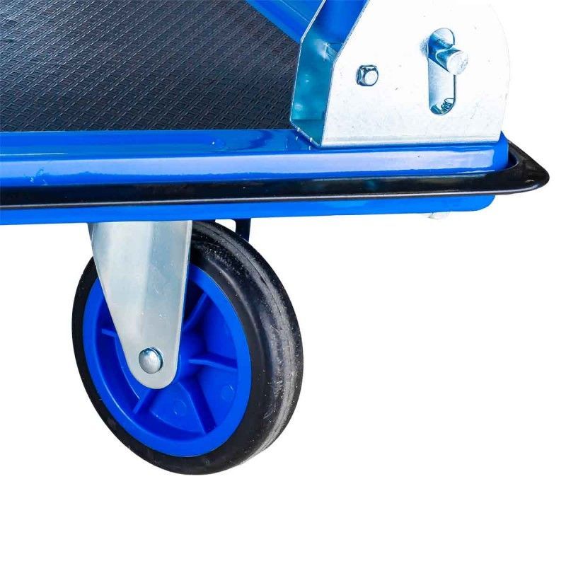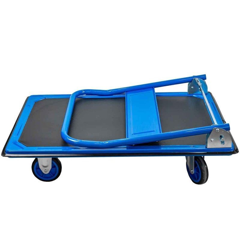 Складная ручная тележка оснащена 4 тихими и износостойкими колесами, которые значительно улучшают маневренность и устойчивость. Габаритные размеры: (ДхШхВ) 910х610х870, 125мм-O колес Максимальная грузоподъемность составляет 300 кг. Багажная тележка оснащена пружинным механизмом который фиксирует ручку при поднятии и опускании. Стальная конструкция отличается высокой прочностью, что позволяет использовать складную тележку при строительстве и на предприятиях, при погрузочно-разгрузочных работах. Противоскользящее покрытие на платформе улучшают устойчивость груза во время транспортировки.