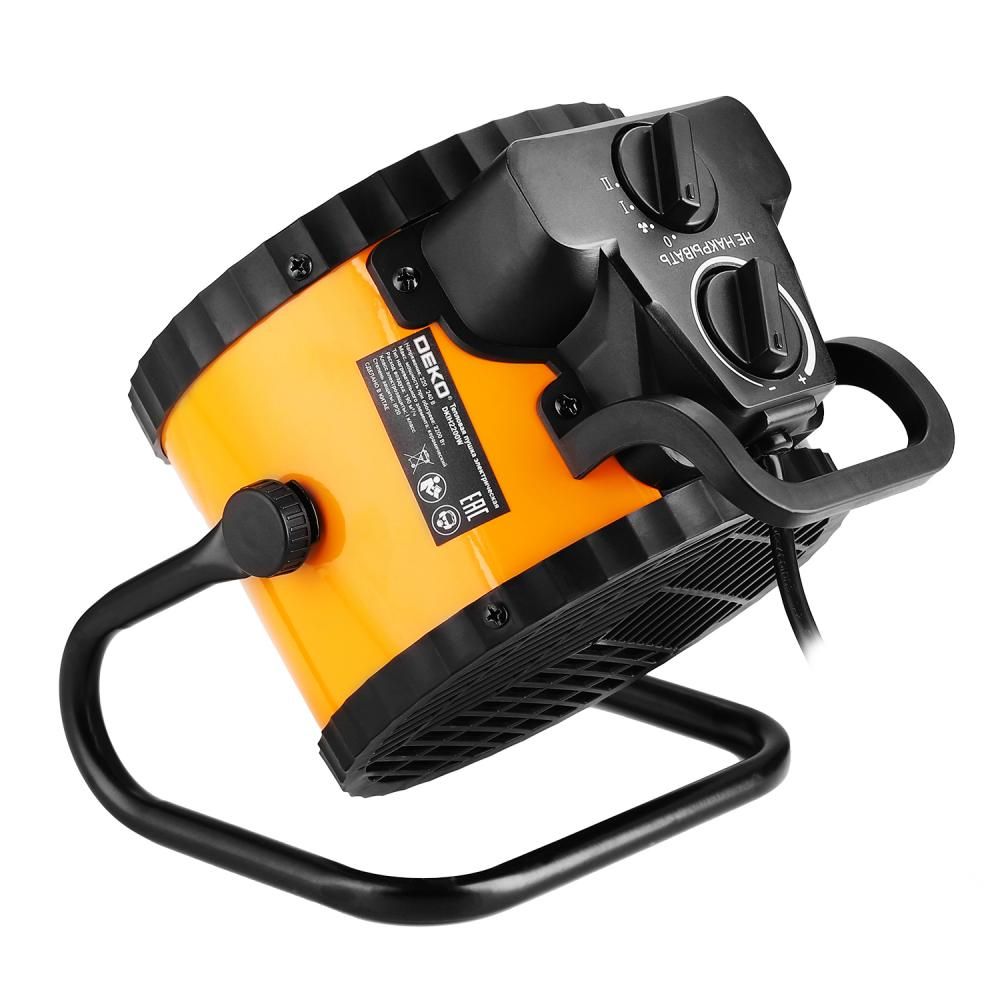 - Тепловая пушка электрическая DEKO DKIH2200W — это компактный и мощный электроинструмент для обогрева жилых и нежилых помещений площадью до 22 кв.м.