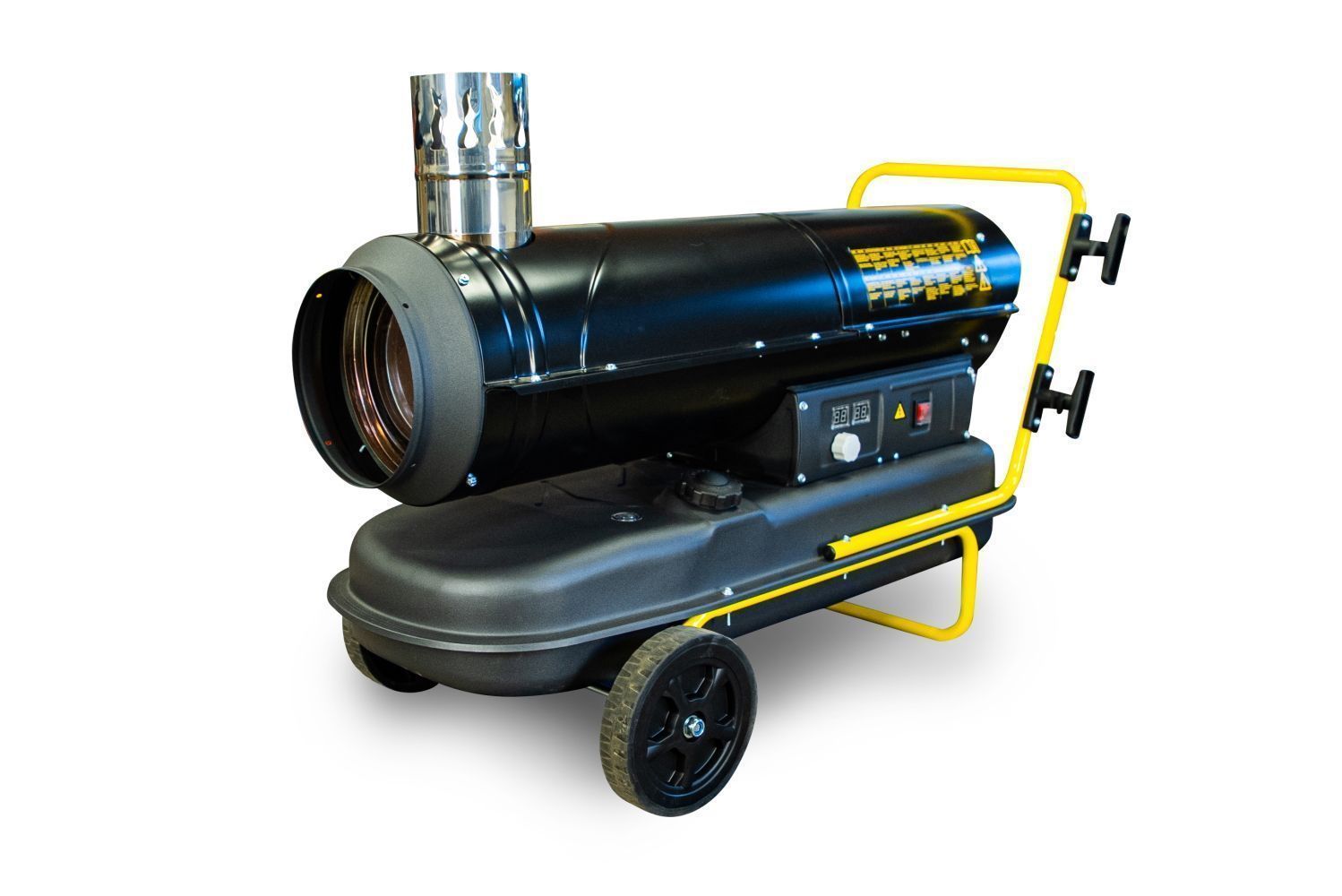 Тепловая пушка дизельная 20кВт, непрямого нагрева MASTER B 70 CED - производительный агрегат для отопления помещений промышленного плана, как например складов, автоматизированных цехов и так далее. Тепловая пушка дизельная достаточно эффективна и прогревает большие по площади помещения за короткое время. Такой производительности добились благодаря относительно несложной конструкцию, которая включает топливную систему, камеру сгорания и вентилятор. В камеру сгорания подается топливо и вырабатывает тепло, которое передается воздухом. Для создания циркуляции воздуха используется вентилятор, который эффективно и быстро рассеивает нагретые воздушные массы в помещении. Открытое пламя из камеры сгорания тепловой пушки дизельной ограничивается защитным экраном, что существенно увеличивает безопасность использования агрегата.