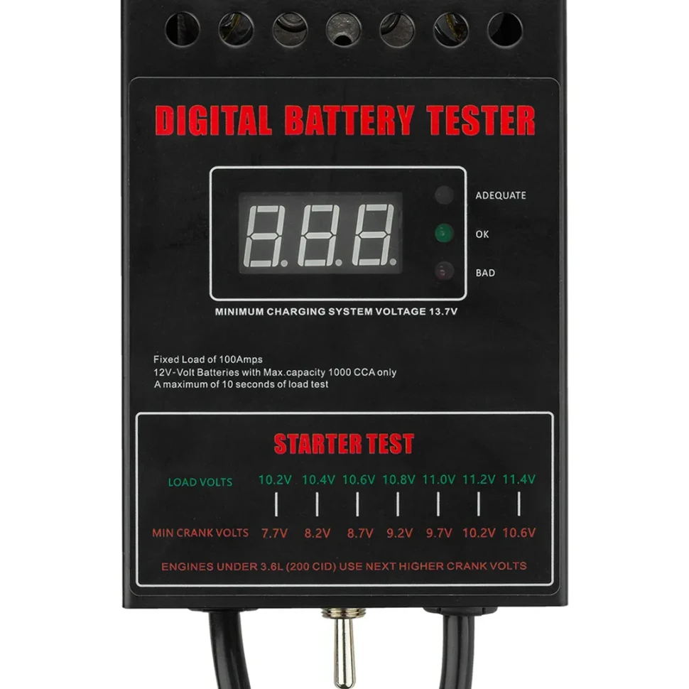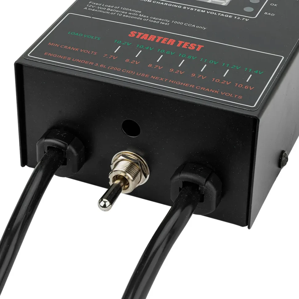 - Прибор предназначен для проверки аккумуляторов ёмкостью до 200 А·ч и оснащён цифровым дисплеем для отображения фактического напряжения и степени заряда.