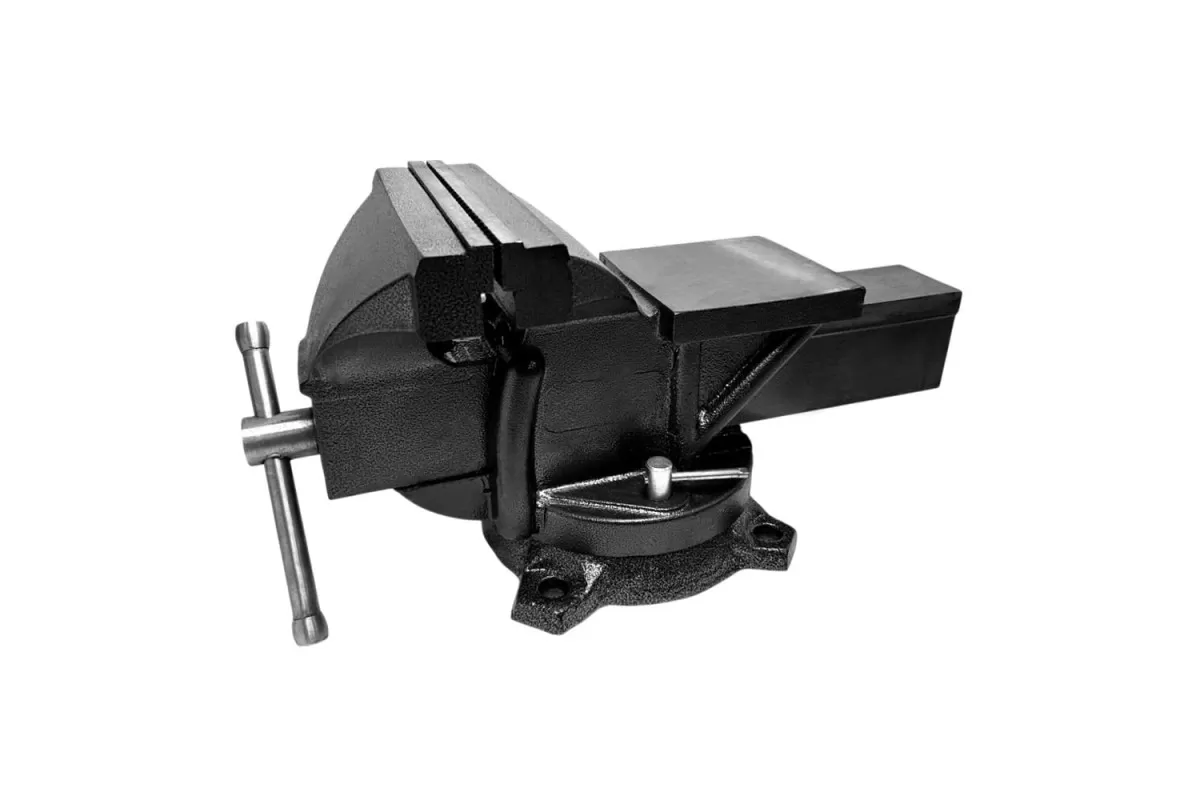 Тиски слесарные 200 мм с поворотным основанием ХОРЕКС АВТО HZ 30.1.208S — прочные слесарные тиски для надёжной фиксации деталей в мастерской с поворотным основанием для удобного позиционирования рабочего объекта.