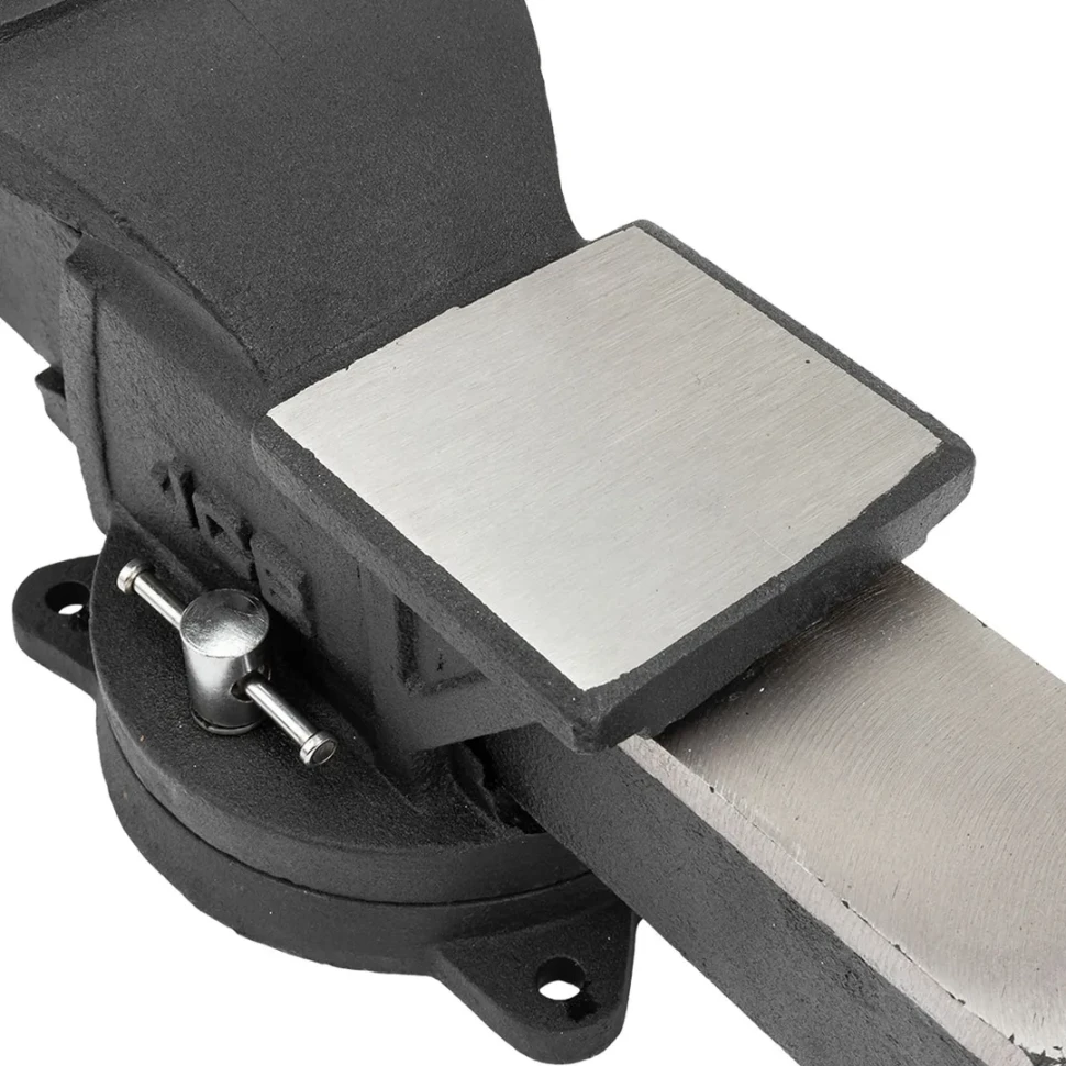 Тиски стальные поворотные с наковальней 6" (150 мм) — это профессиональный инструмент из высококачественного серого чугуна, предназначенный для надежной фиксации заготовок в слесарных, столярных и монтажных работах. Модель оснащена широкими губками размером 150 мм, обеспечивающими мощный и равномерный зажим, и поворотным основанием на 360 градусов для удобного позиционирования детали без её переустановки. В конструкции интегрирована прочная наковальня для выполнения правки и рихтовки. Тиски отличаются повышенной устойчивостью, износостойкостью и рассчитаны на интенсивное использование в мастерской или гараже, а также сопровождаются годовой гарантией замены.