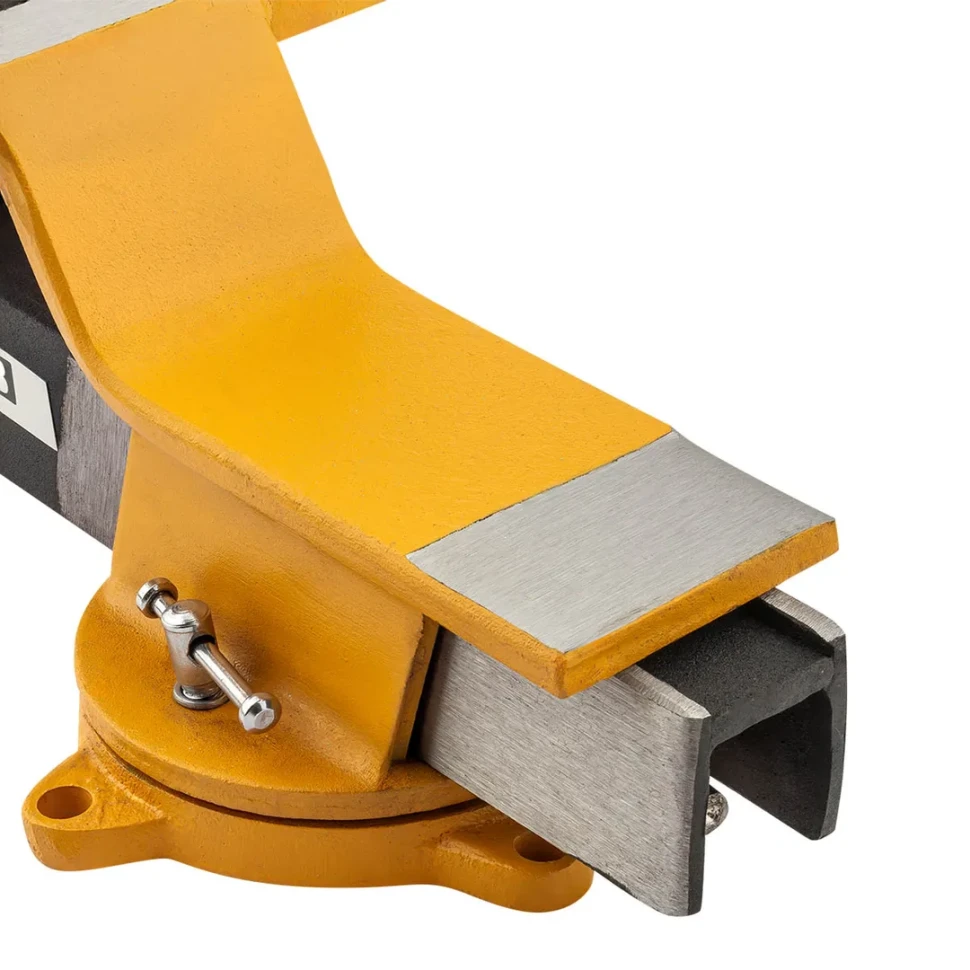 Слесарные тиски стационарные с поворотным основанием — это профессиональное оборудование для надёжной фиксации заготовок при выполнении слесарных, механообрабатывающих и сборочных работ. Тиски изготовлены из высокопрочной стали, оснащены поворотной базой на 360° для удобного позиционирования и обеспечивают максимальное раскрытие губок 150 мм при ширине губок 150 мм. Конструкция включает встроенную наковальню размером 75 мм и развивает усилие зажима до 2100 кг, что гарантирует жёсткую фиксацию даже крупных деталей. Тиски предназначены для установки на верстаки в мастерских, производственных цехах, автосервисах и учебных заведениях, обеспечивая безопасность, устойчивость и долговечность при интенсивном использовании.