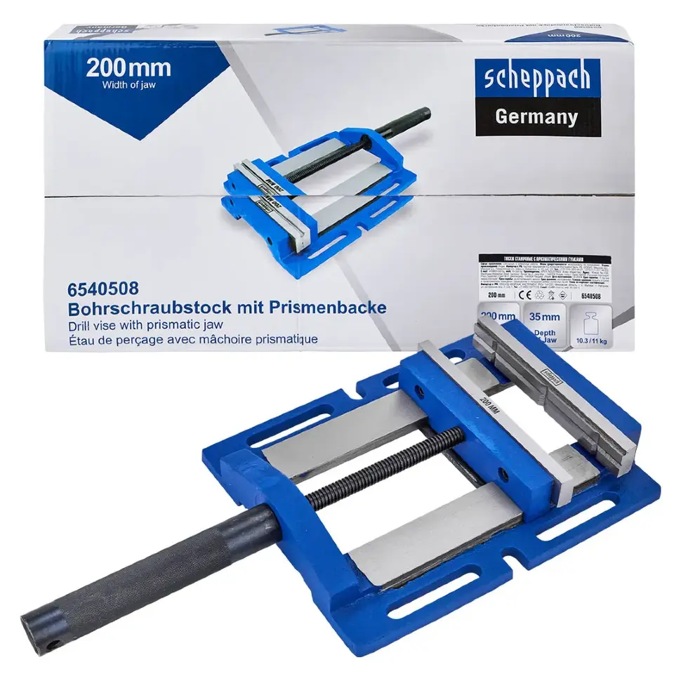 Станочные тиски Scheppach Sch‑6540508 — мощный зажимной инструмент с шириной губок 200 мм, предназначенный для надёжной фиксации крупных заготовок при сверлении, фрезеровании и других операциях. Призматические губки обеспечивают устойчивое удержание цилиндрических и сложных деталей, а глубина зажима 35 мм подходит для большинства задач. Массивная конструкция из стали устойчива к вибрациям и рассчитана на интенсивную эксплуатацию в мастерской или на производстве.
