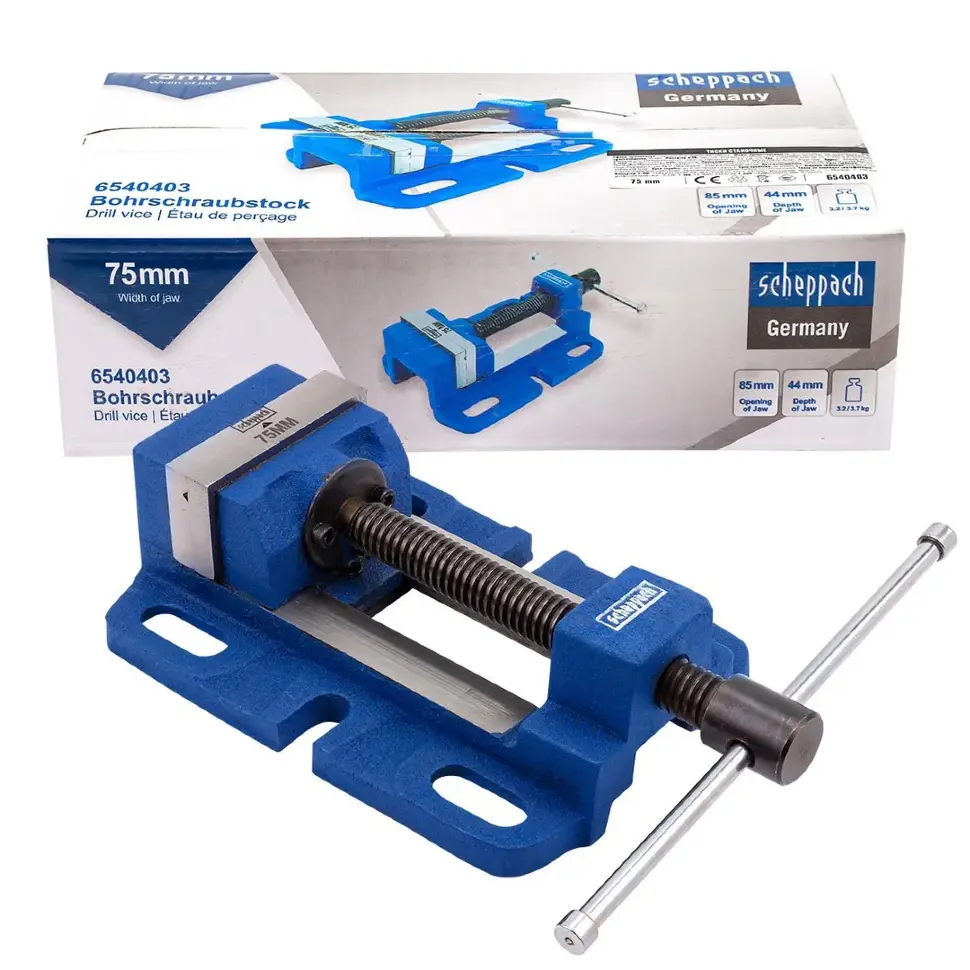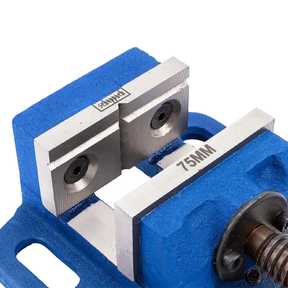 Станочные тиски Scheppach Sch‑6540403 — компактная модель с шириной губок 75 мм, предназначенная для точной фиксации мелких и средних заготовок. Максимальный рабочий ход 85 мм и глубина зажима 44 мм позволяют надёжно удерживать детали при сверлении и фрезеровании. Призматические пазы в губках обеспечивают устойчивое крепление круглых, треугольных и нестандартных форм. Чугунный корпус и стальные губки гарантируют прочность и долговечность.