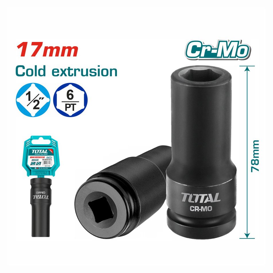 - Торцевая головка удлиненная ударная 1/2" 17 мм TOTAL THDIS12171L - 1 шт.