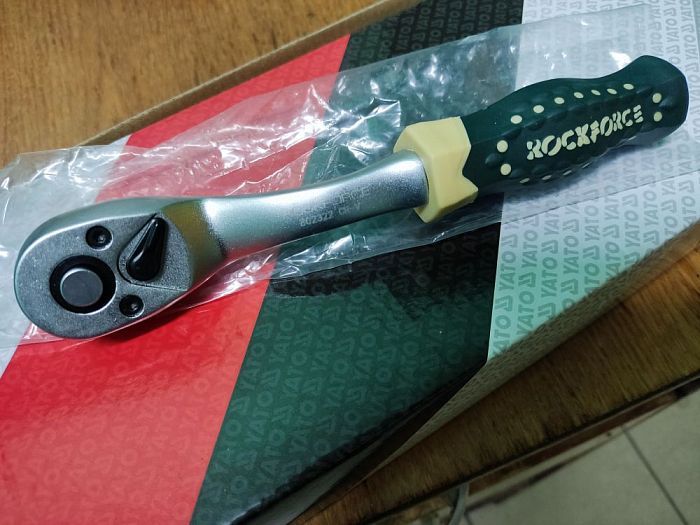 Трещотка реверсивная усиленная изогнутая с резиновой ручкой 3/8 (72зуб.) Rock FORCE RF-802322