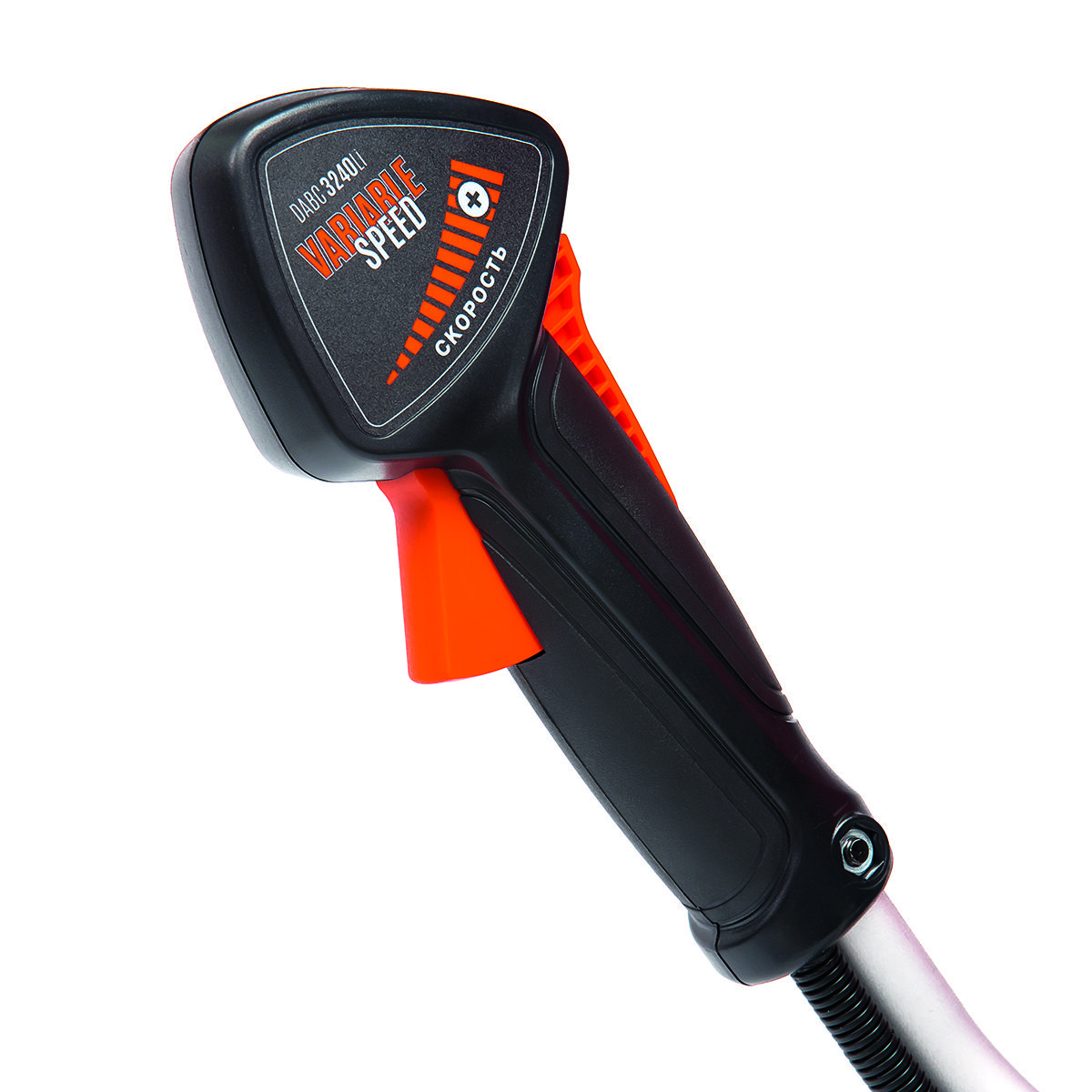 - Эргономичный рычаг управления двигателем с возможностью регулировки скорости расположен прямо на рукоятке для оперативного и точного контроля над работой устройства.