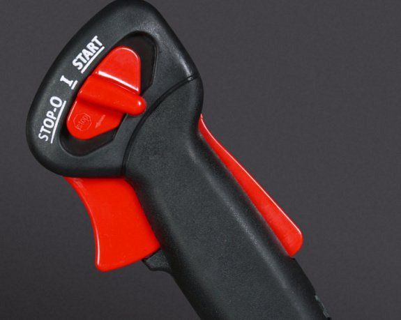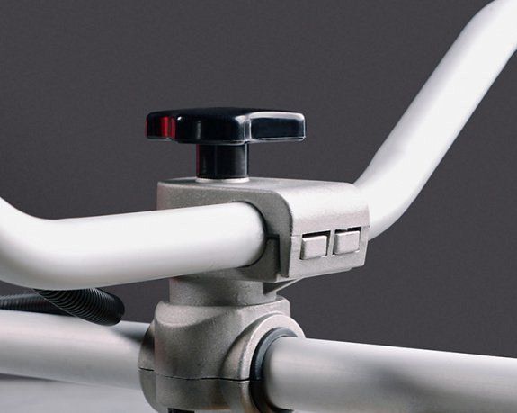 Обрезиненная «велосипедная» рукоятка с удобным управлением значительно облегчают работу.