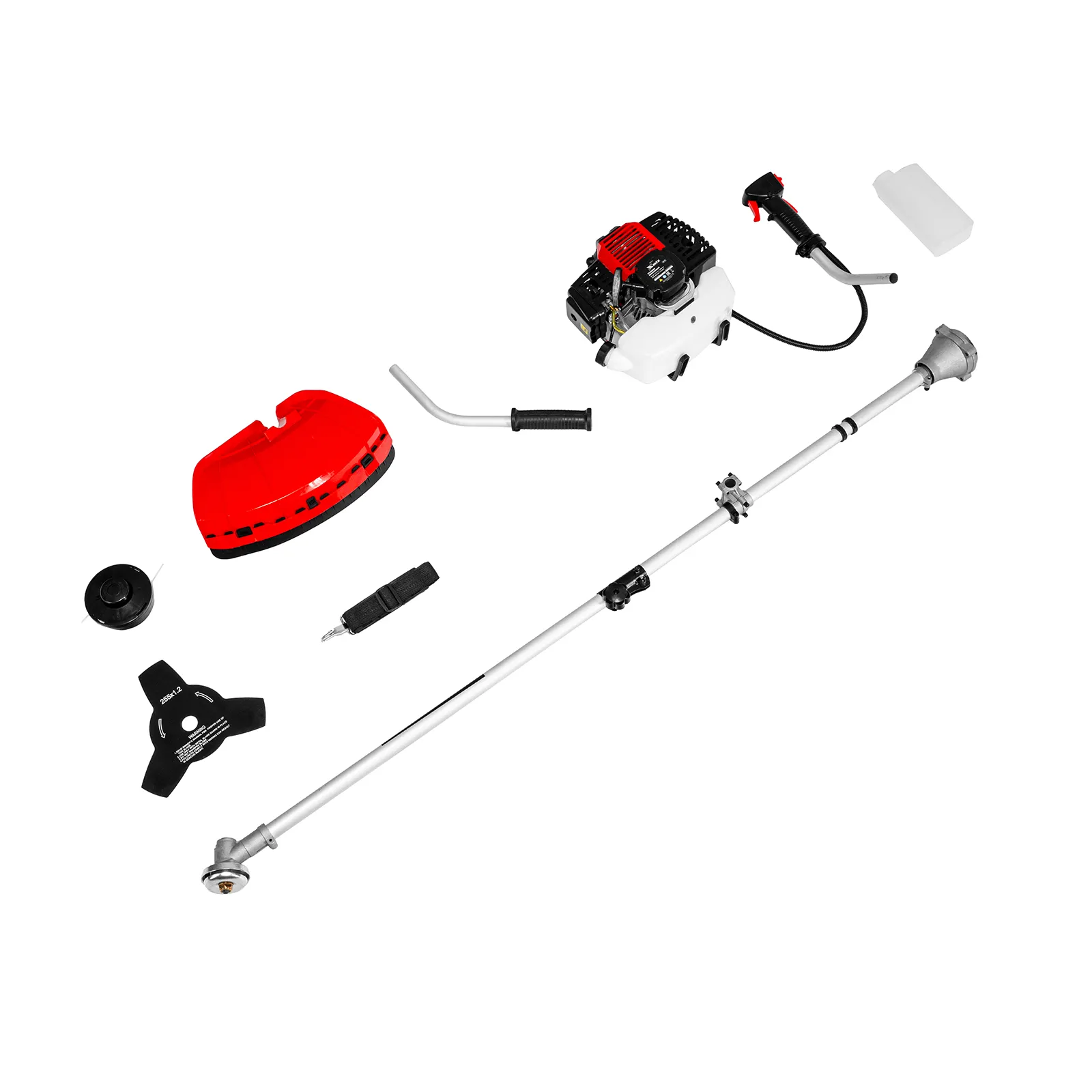 Бензиновый триммер MTX MT-43S с разъемной штангой и двигателем объемом 43 см3 предназначен для стрижки и скашивания травы, формирования границ газонов. Удобен для обработки участков вдоль стен и оград, вокруг деревьев. В качестве режущих элементов используются катушка с леской диаметром 3 мм и трехлопастный нож, благодаря которым триммером можно скашивать даже густую траву и сорняки с толстыми стеблями. Ширина скашивания леской составляет 420 мм, ножом — 255 мм, что позволяет эффективно справляться с работой. Триммер незаменим для ухода за дачным участком.