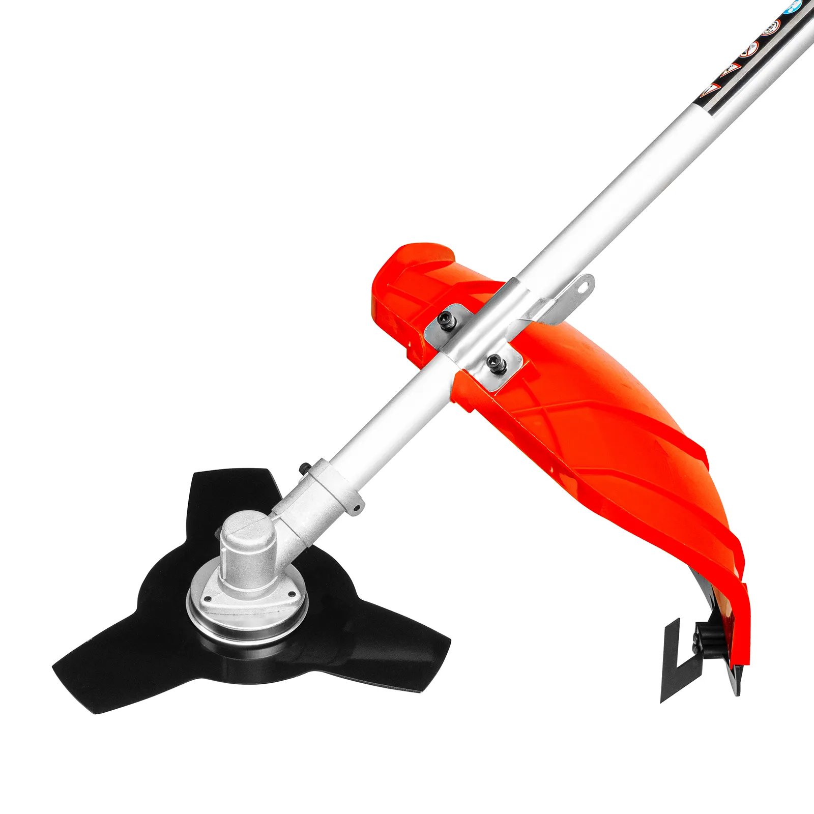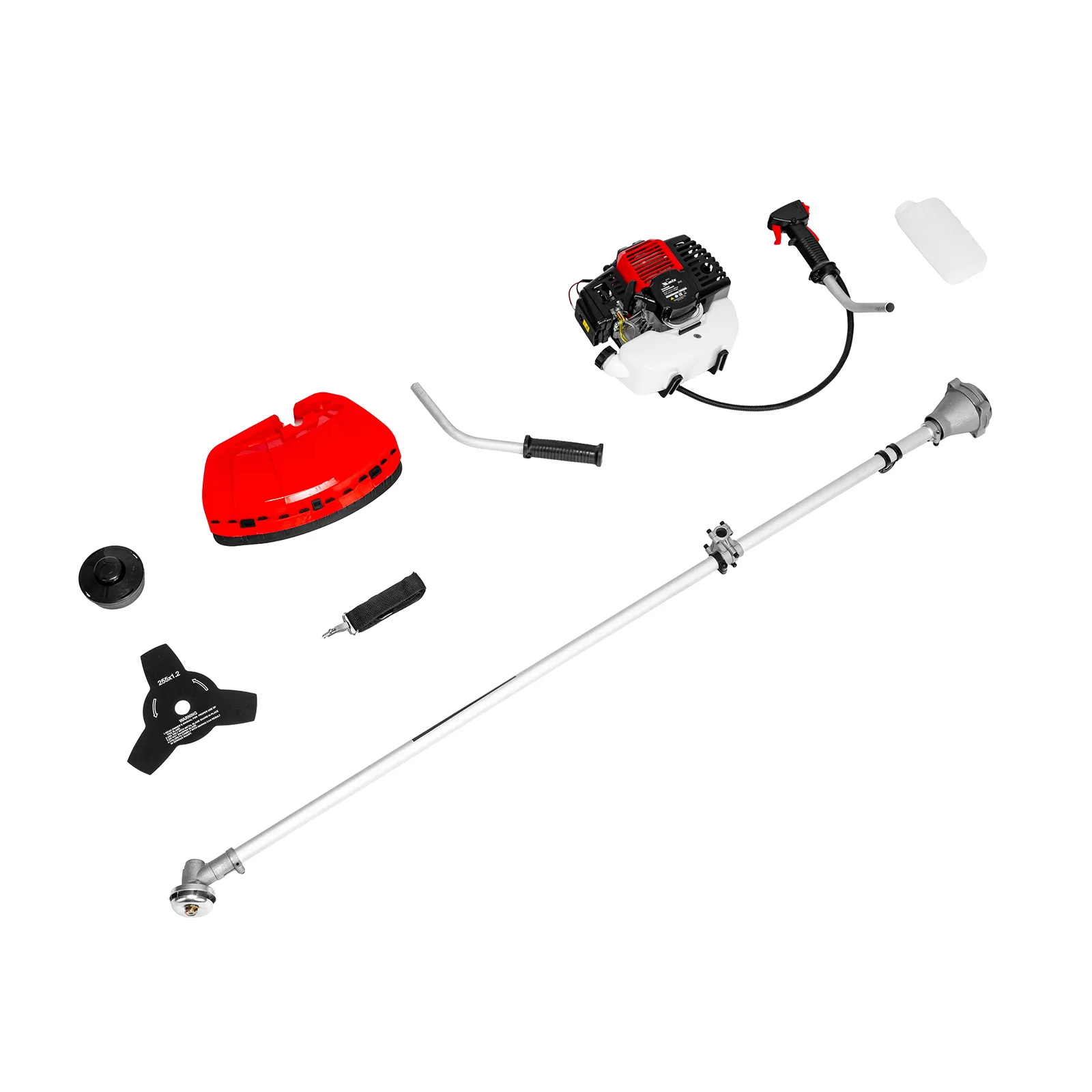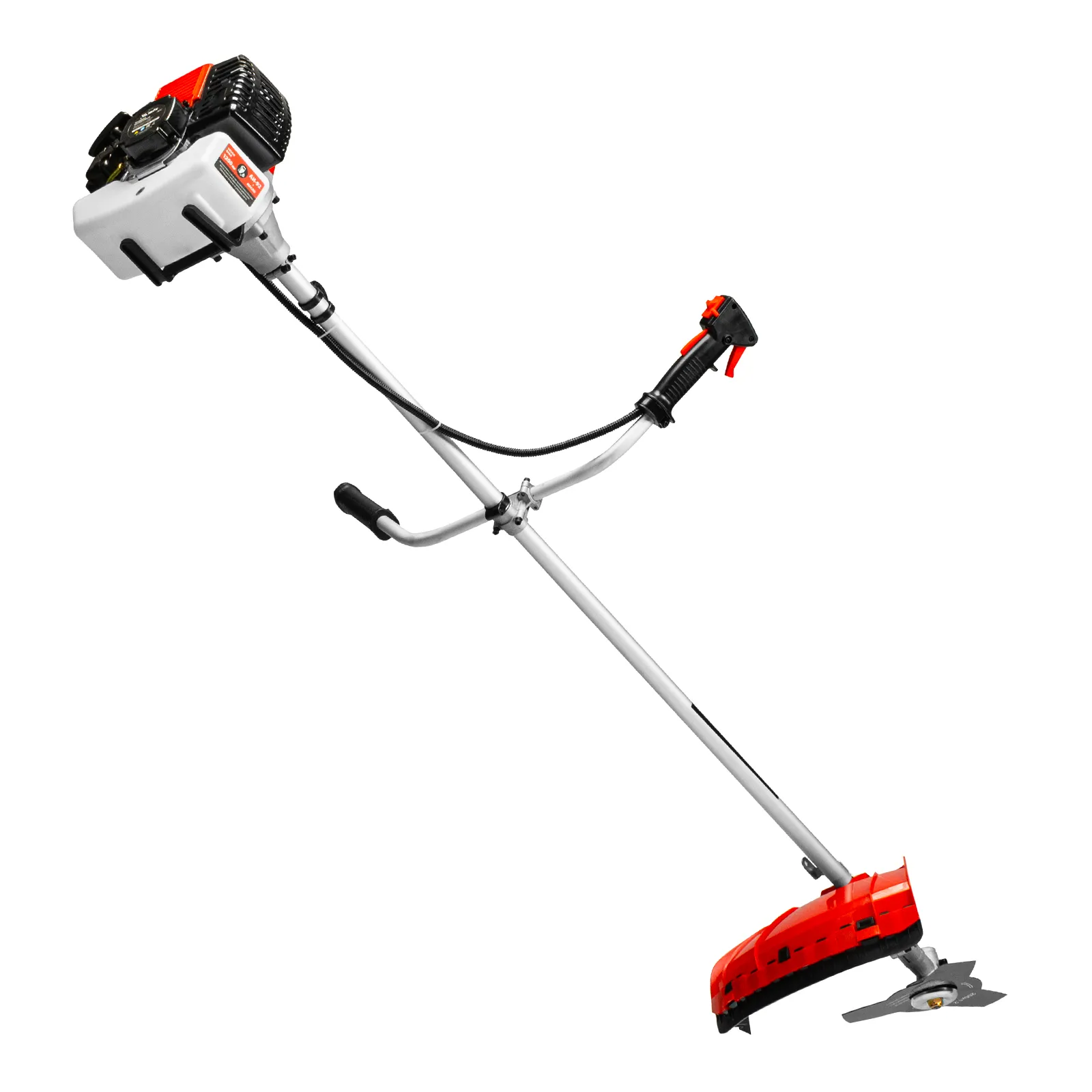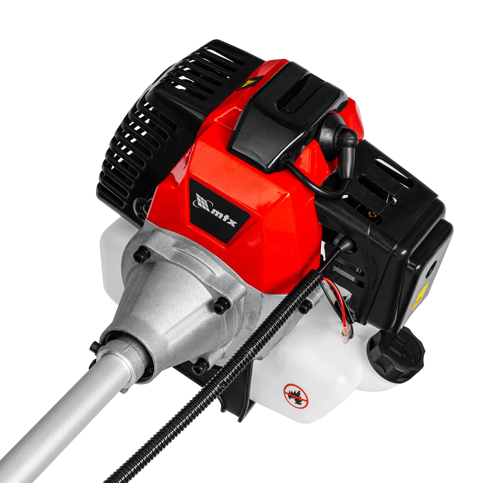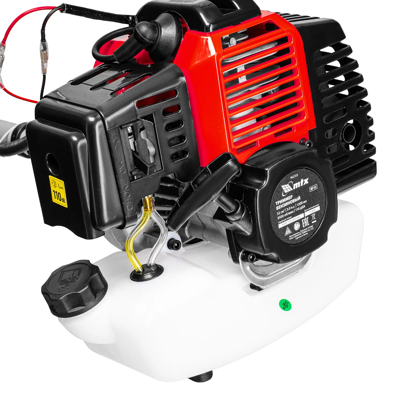 Бензиновый триммер MTX MT-52 с неразъемной штангой и двигателем объемом 52 см3 предназначен для стрижки и скашивания травы, формирования границ газонов. Удобен для обработки участков вдоль стен и оград, вокруг деревьев. В качестве режущих элементов используются катушка с леской диаметром 3 мм и трехлопастный нож, благодаря которым триммером можно скашивать даже густую траву и сорняки с толстыми стеблями. Ширина скашивания леской составляет 420 мм, ножом — 255 мм, что позволяет эффективно справляться с работой. Триммер незаменим для ухода за дачным участком.