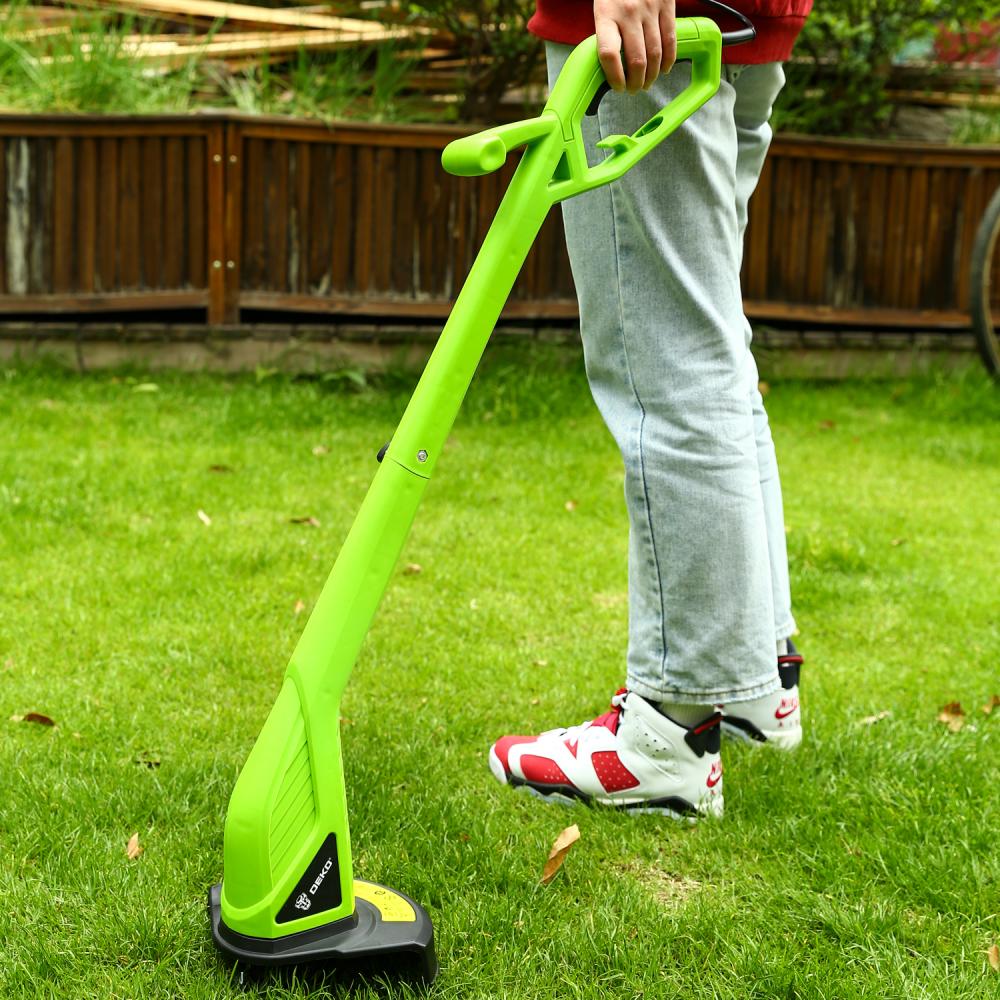 - Триммер садовый электрический DEKO DKTR400 - компактная модель, удобная для скашивания травы в труднодоступных местах, вдоль заборов, клумб, подравнивания газонов, краев садовых дорожек.