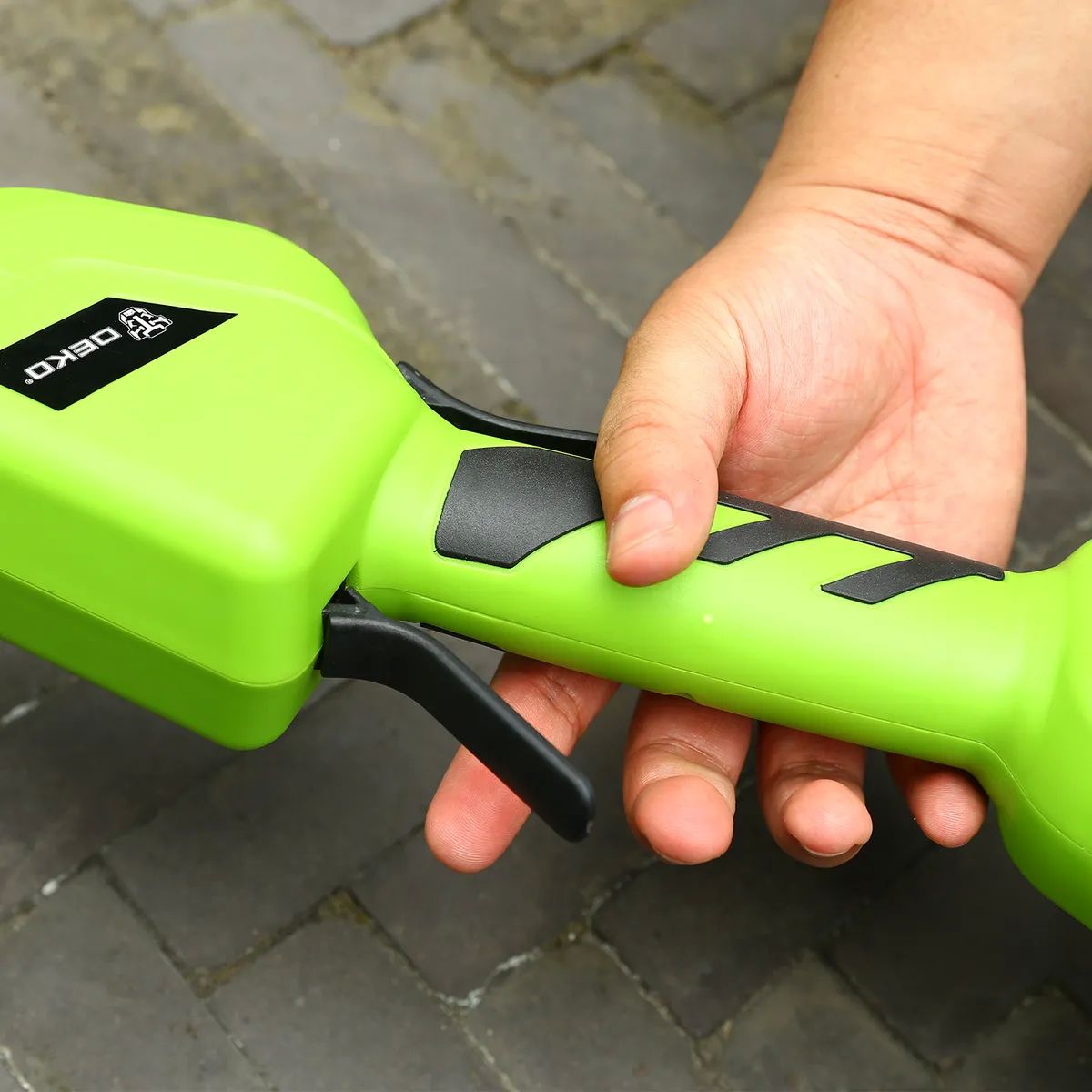 - Триммер-кусторез садовый аккумуляторный 2 в 1 DEKO DKTR40 - это компактная аккумуляторная триммер модель, удобная для скашивания травы в труднодоступных местах, вдоль заборов, клумб, подравнивания газонов, краев садовых дорожек.