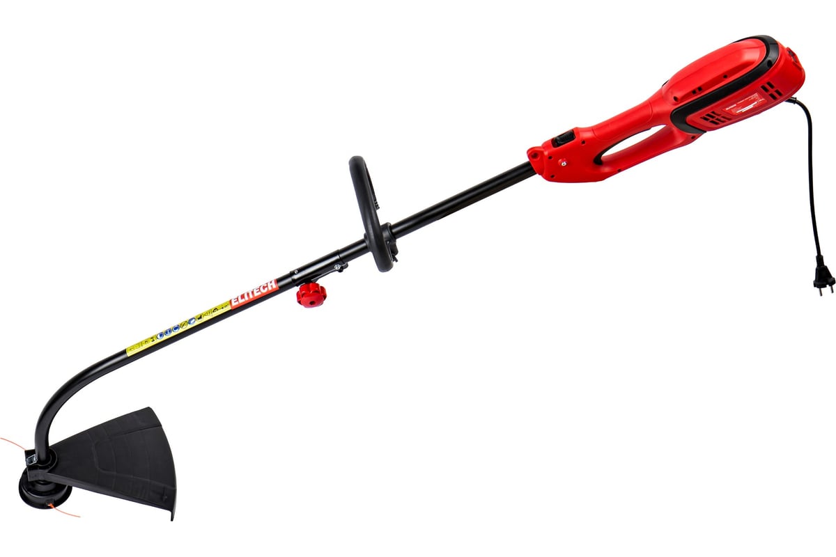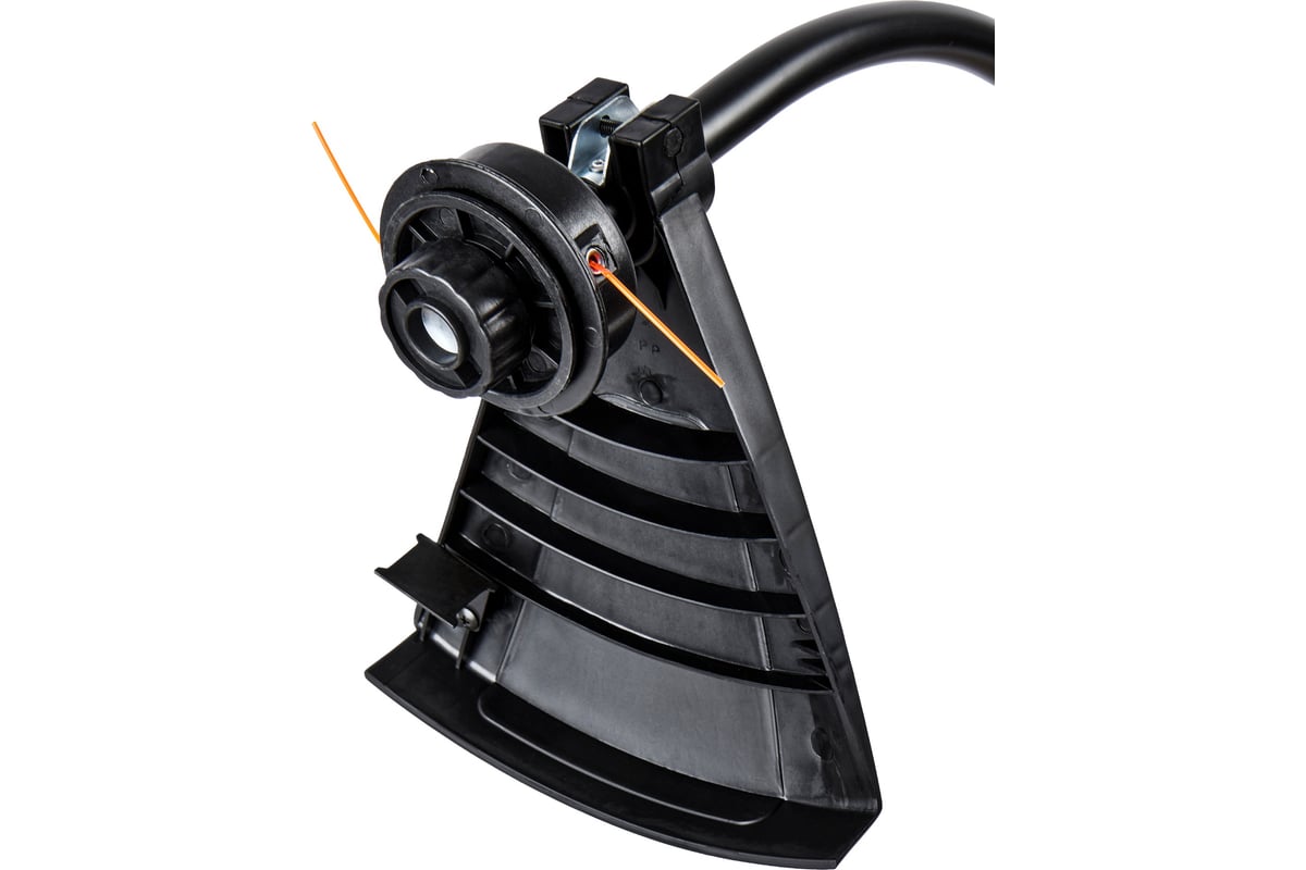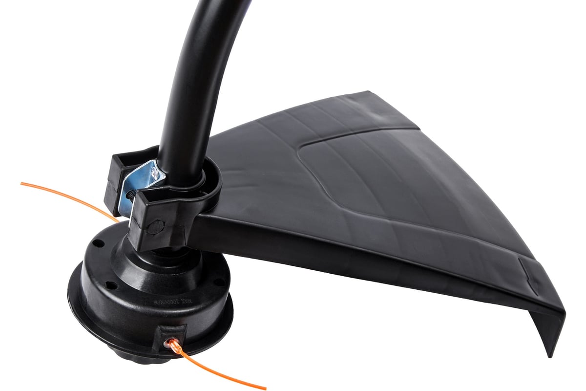 Электрический триммер с изогнутой разборной штангой и петлевой ручкой, мощностью 1200 Вт, с шириной захвата кордом (леской) 380 мм, предназначен для кошения вновь вырастающей и не переросшей травы на подготовленных участках с травяным покрытием, приусадебных и придомовых территориях.
