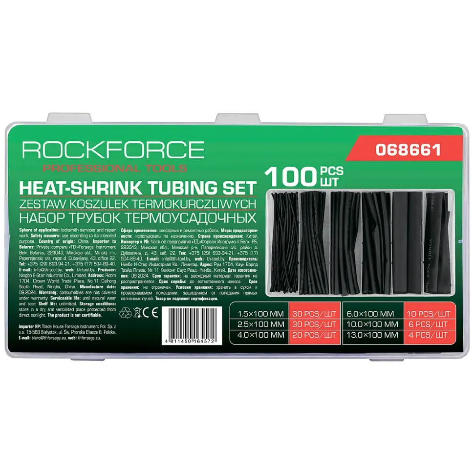 Трубки термоусадочные, набор 100пр. RockFORCE RF-068661