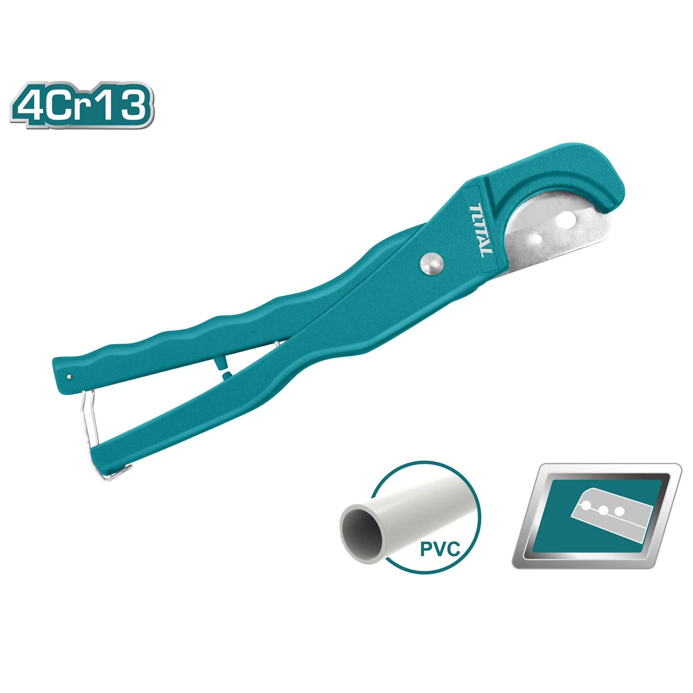 - Ножницы для резки ПВХ труб TOTAL THT53351 — ручной инструмент, который используется в монтажных и демонтажных работах с системами коммуникаций.