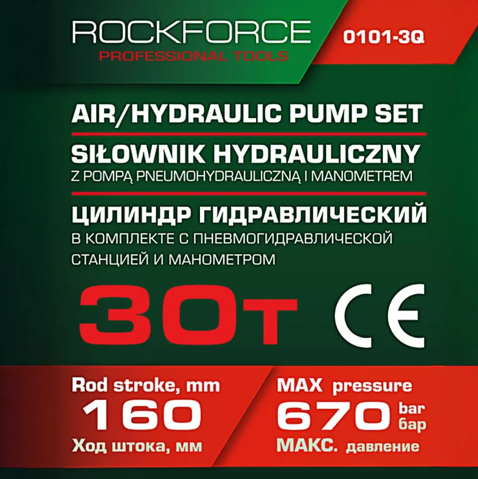 Цилиндр гидравлический для пресса в комплекте со станцией гидравлической и манометром, 30т Rock FORCE RF-0101-3Q
