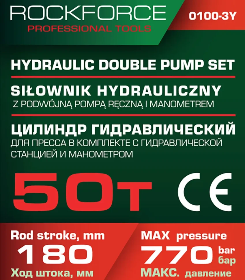 Цилиндр гидравлический для пресса в комплекте со станцией гидравлической и манометром, 50т RockFORCE RF-0100-3Y[ из 2-х частей]