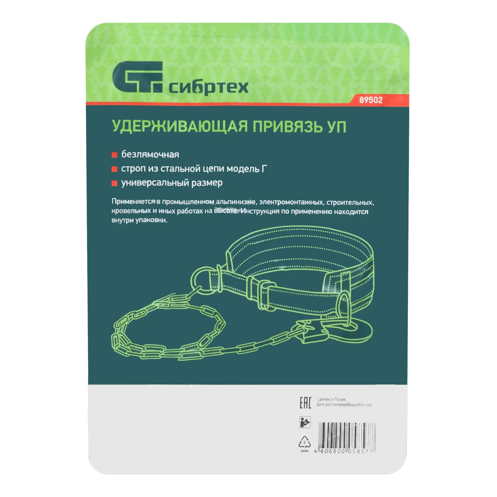 Удерживающая привязь УП I, безлямочная, строп из стальной цепи модель Г Сибртех 89502