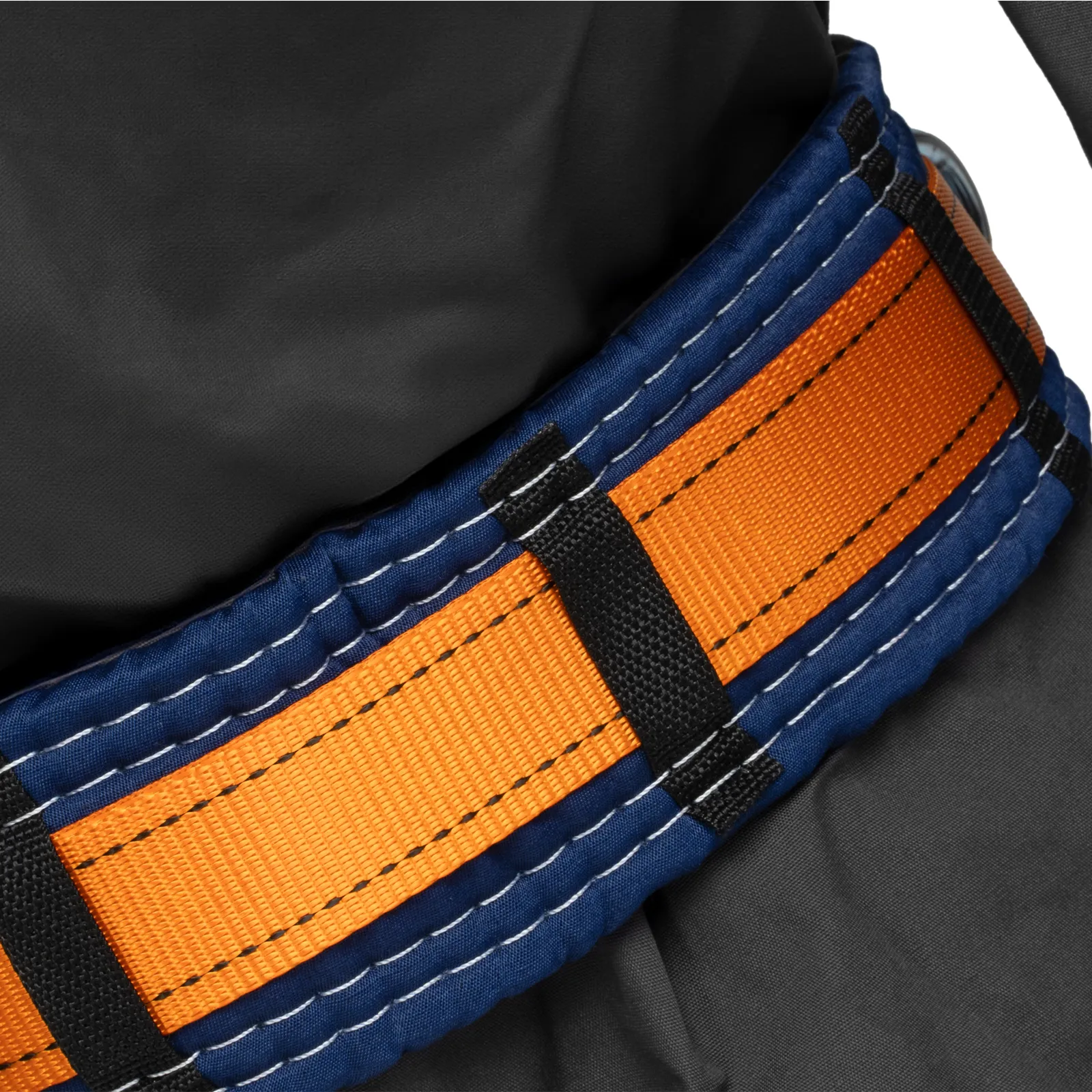 Привязь имеет универсальный размер за счет быстрозатягивающейся регулировочной пряжки, ее можно подогнать под любой размер.