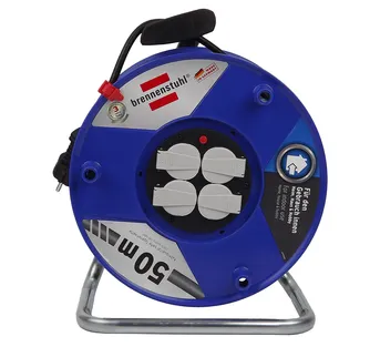 Удлинитель на катушке 50м, 4 розетки, 3.3кВт, 3х1.5mm2, IP20, с заземляющим контактом, ...