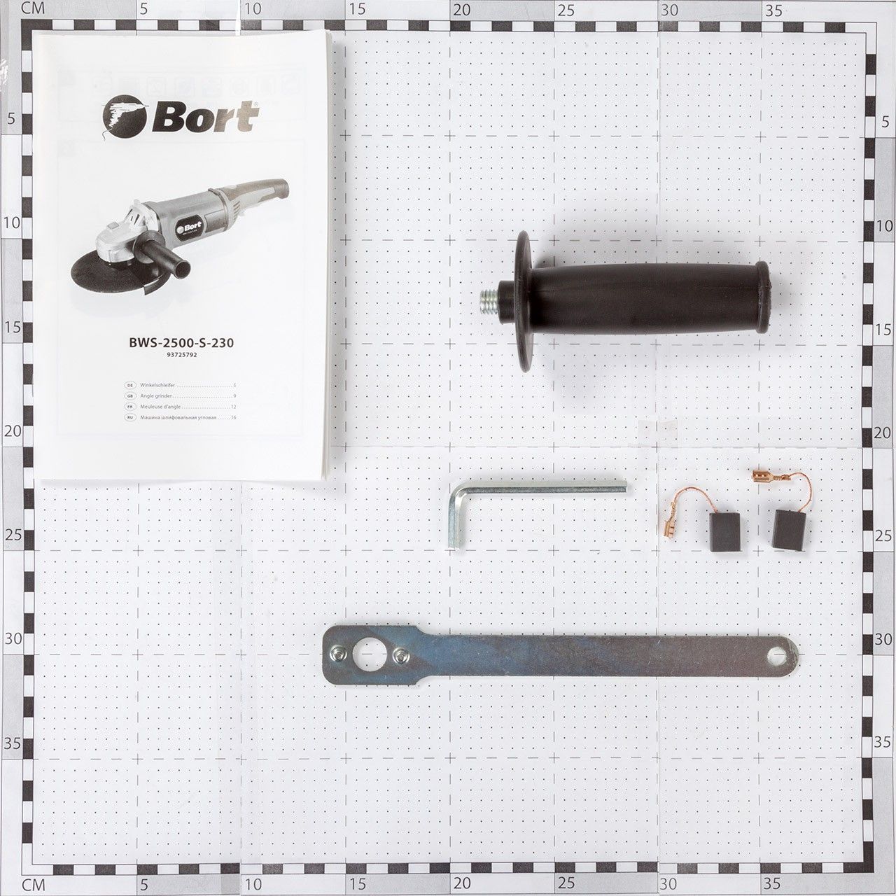 - Bort BWS-2500-S-230 – угловая шлифовальная машина, которая предназначена для выполнения полупрофессиональных и бытовых работ.