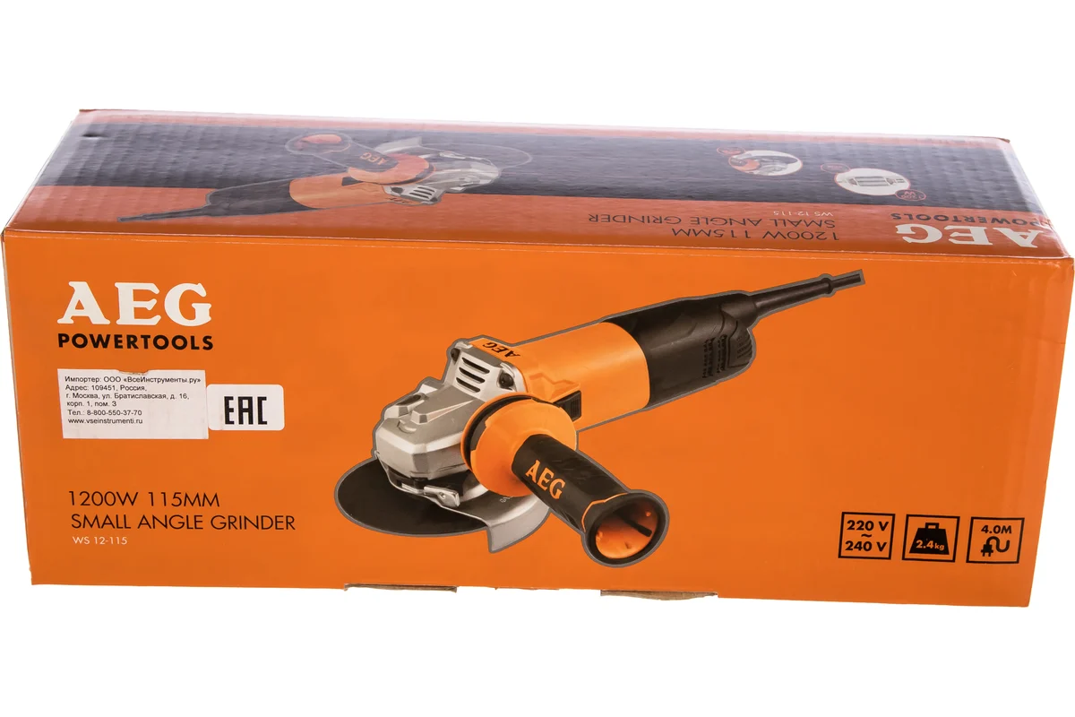 Углошлифмашина 1200Вт, 115мм, 11500об/мин, AEG WS12-115