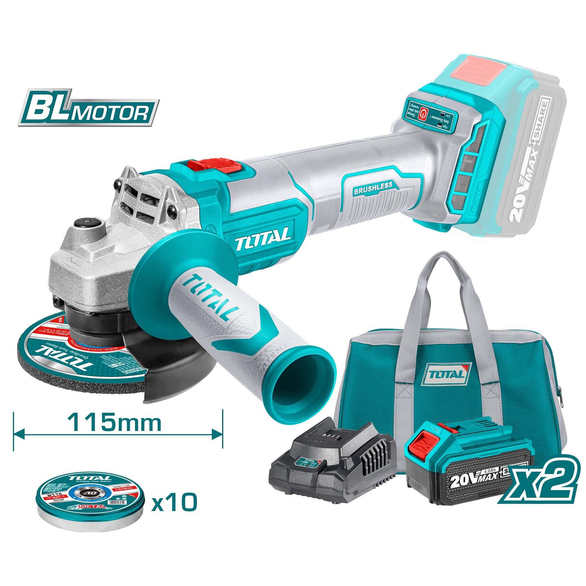 Углошлифмашина аккумуляторная, 20В, 115мм, 3000 - 8500 об/мин, 2АКБ 4,0 А/ч, TOTAL TAGLI2011582