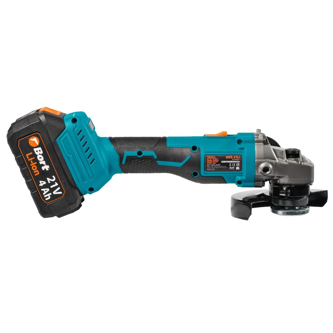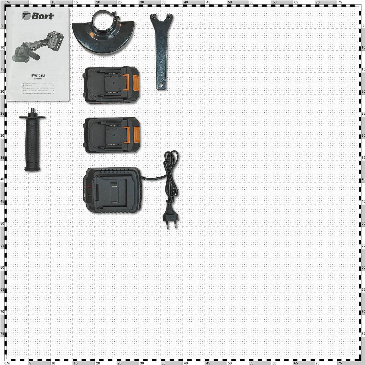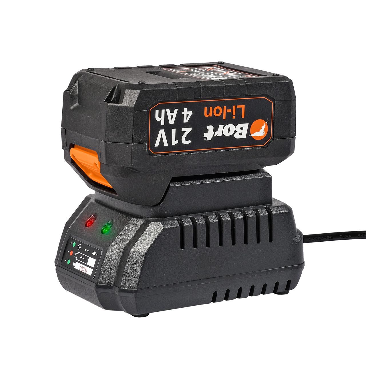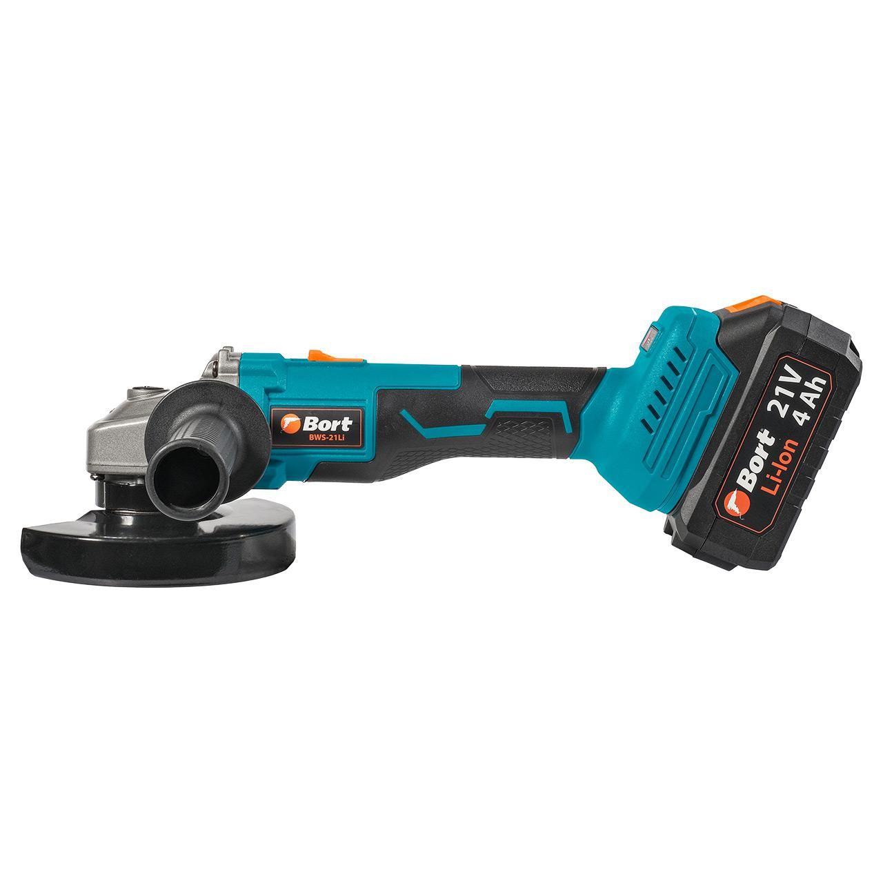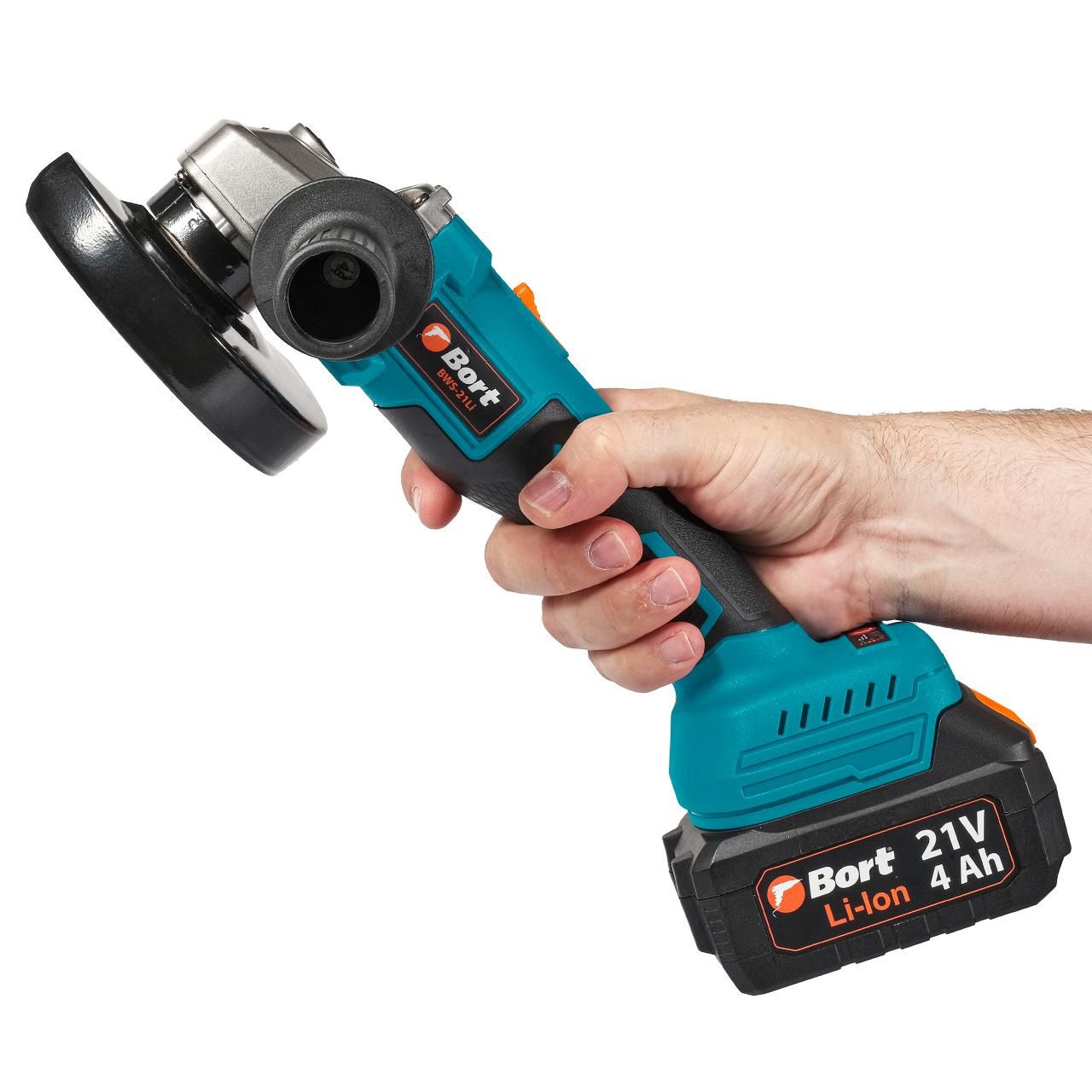- Bort BWS-21LI оснащена мощным 4 амперным аккумулятором, что позволяет работать без необходимости подключения к сети электропитания. Это делает ушм портативным и удобным в использовании в любом месте, где нет доступа к розетке, так как в комплекте идет дополнительная батарея и быстрое слайдерное зарядное устройство с током зарядки 4 ампера.