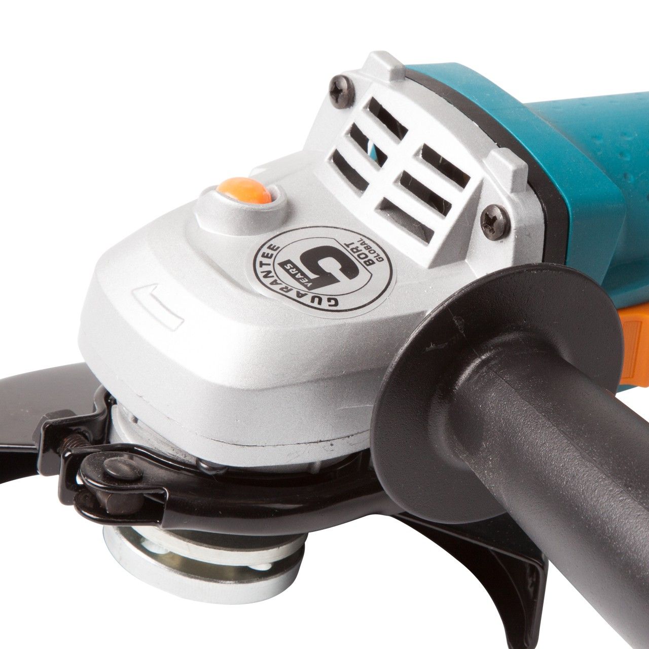 УШМ Bort BWS-950 – легкая и удобная болгарка с высокой мощностью и диаметром диска 125 мм. Надежность и выносливость этого инструмента находится на уровне профессиональных машин. Это подтверждается многочисленными отзывами пользователей после длительной эксплуатации в различных условиях. Конструктивное исполнение УШМ позволяет причислить ее к профессиональному классу. Обмотки якоря защищены специальной пропиткой и дополнительным бандажом. Шестерни редуктора работают в специальной смазке, адаптированной к продолжительной работе при очень высокой скорости. Одна из особенностей модели – размеры корпуса. Благодаря им, работать в узких местах действительно удобно, а небольшой вес не будет дополнительно напрягать руки при продолжительных работах. Как и на всех современных УШМ, имеется блокировка шпинделя, с помощью которой диски меняются просто и быстро. Также, вы можете изменять положение защитного кожуха без ключа. В комплекте идут дополнительные щетки, защитный кожух, боковая рукоятка и ключ для смены диска.
