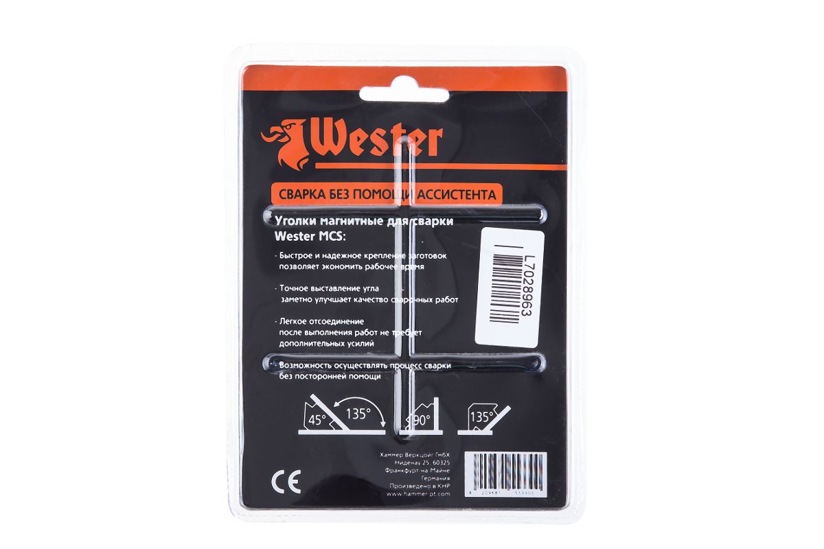 - Уголки магнитные для сварки WESTER MCS (4 шт.), углы 45°, 90°, 135°, 5кг