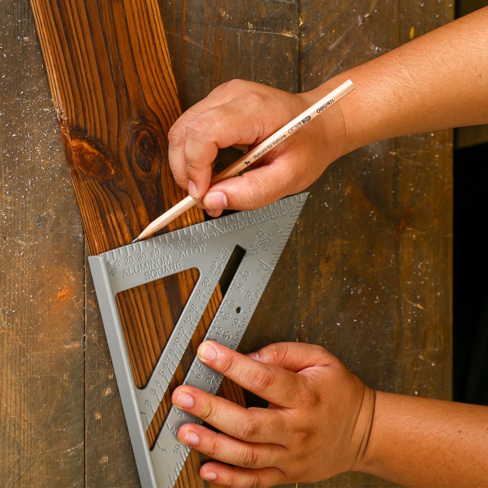 - Алюминиевая треугольная линейка DEKO DKM180-255-180 обеспечивает высокоточную разметку на плоских деталях.