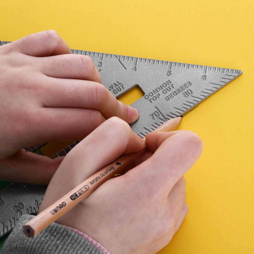 - Алюминиевая треугольная линейка DEKO DKM180-255-185 обеспечивает высокоточную разметку на плоских деталях. Боковой упор и крупные шкалы угольника повышают точность и легкость разметки при работе.