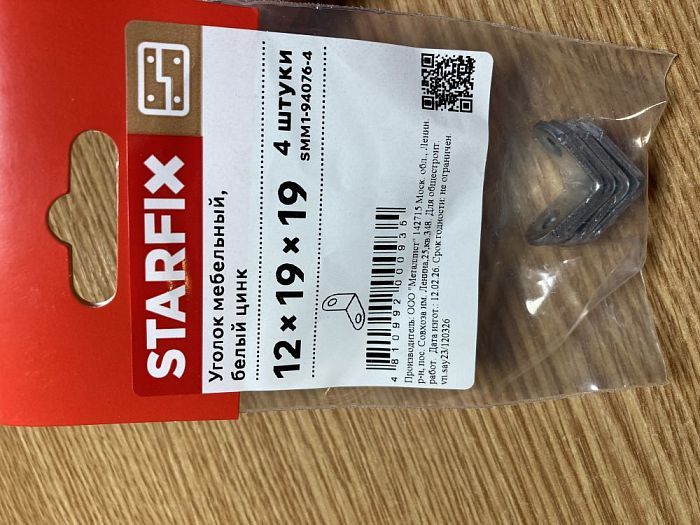 Уголок мебельный 12х19х19 mm белый цинк (4 шт в зип-локе) STARFIX SMM1-94076-4