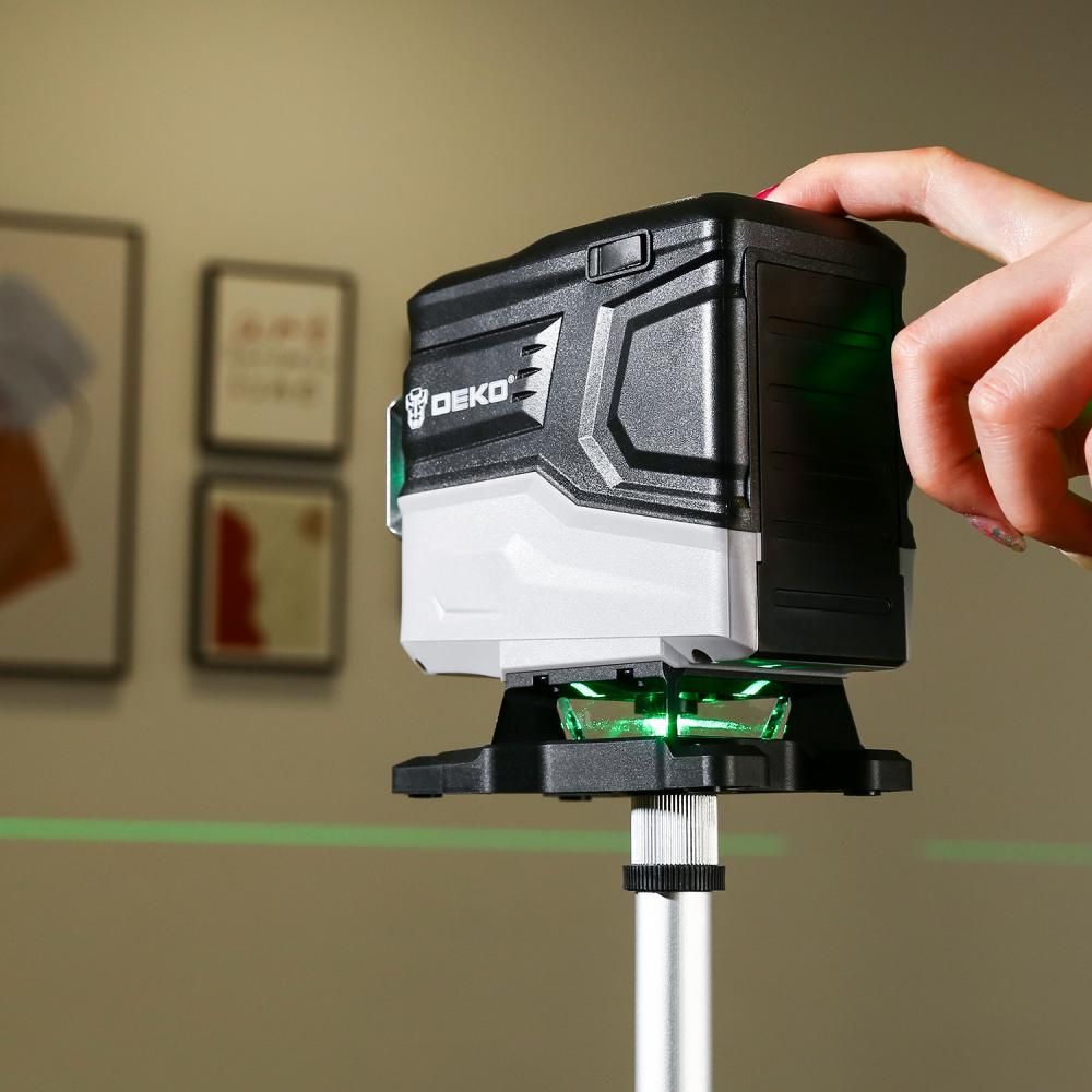 - Лазерный уровень DEKO LL12-HVR - это самовыравнивающийся прибор, используемый при отделочных и строительных работах. Он проецирует вертикальные и горизонтальные линии.