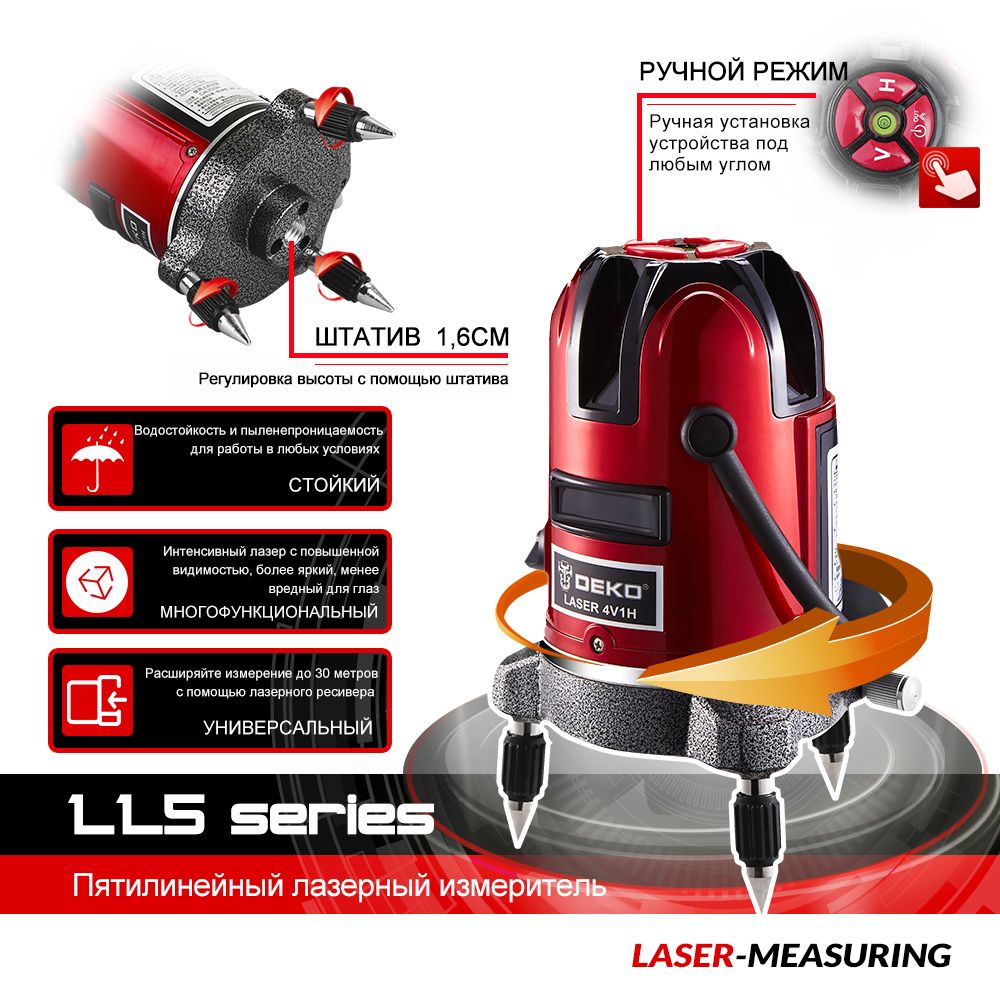 - Лазерный уровень DEKO LL57 - это самовыравнивающийся прибор, используемый при отделочных и строительных работах.