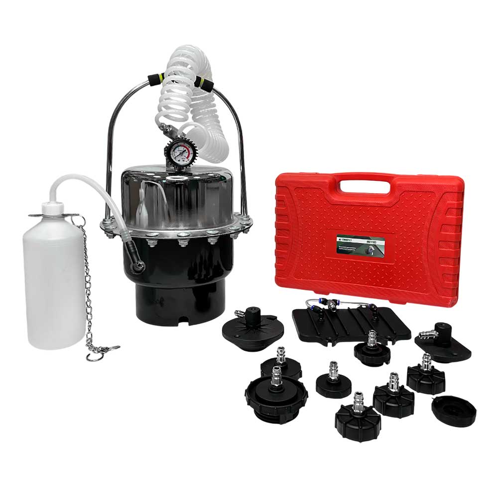 Обеспечивает возможность замены жидкости одним человеком в течение нескольких минут без риска завоздушивания системы. Кроме того, установка оснащена специальным резервуаром низкого давления, который может быть предварительно заполнен сжатым воздухом. Благодаря этому установка может работать без постоянной подачи сжатого воздуха.