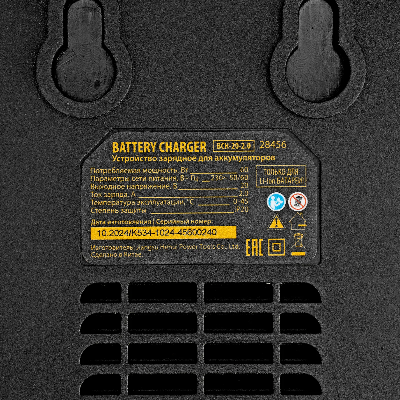 Устройство зарядное для аккумуляторов BCH-20-2.0, Li-Ion, 20 В, 2,0 А DENZEL 28456