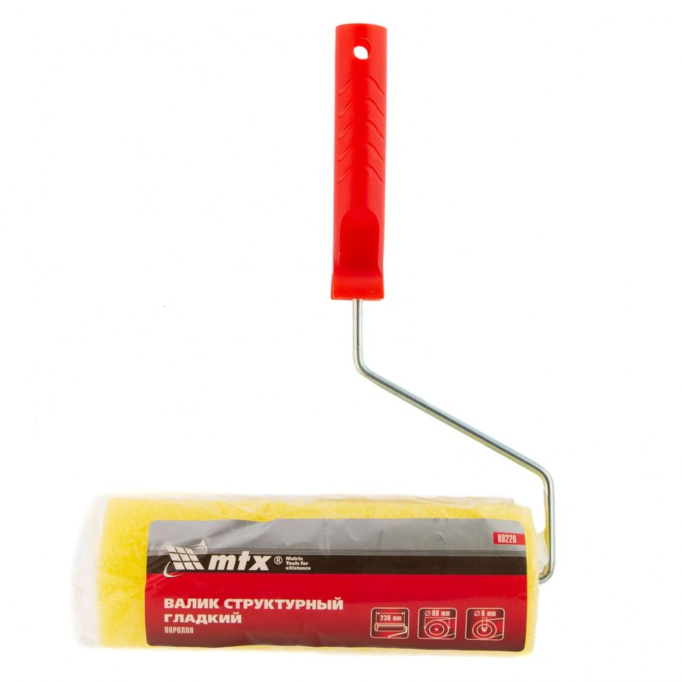 Валик "СТРУКТУРНЫЙ" поролоновый с ручкой, "гладкий", 230 мм, D - 80 мм, D ручки - 6 мм MTX 80220